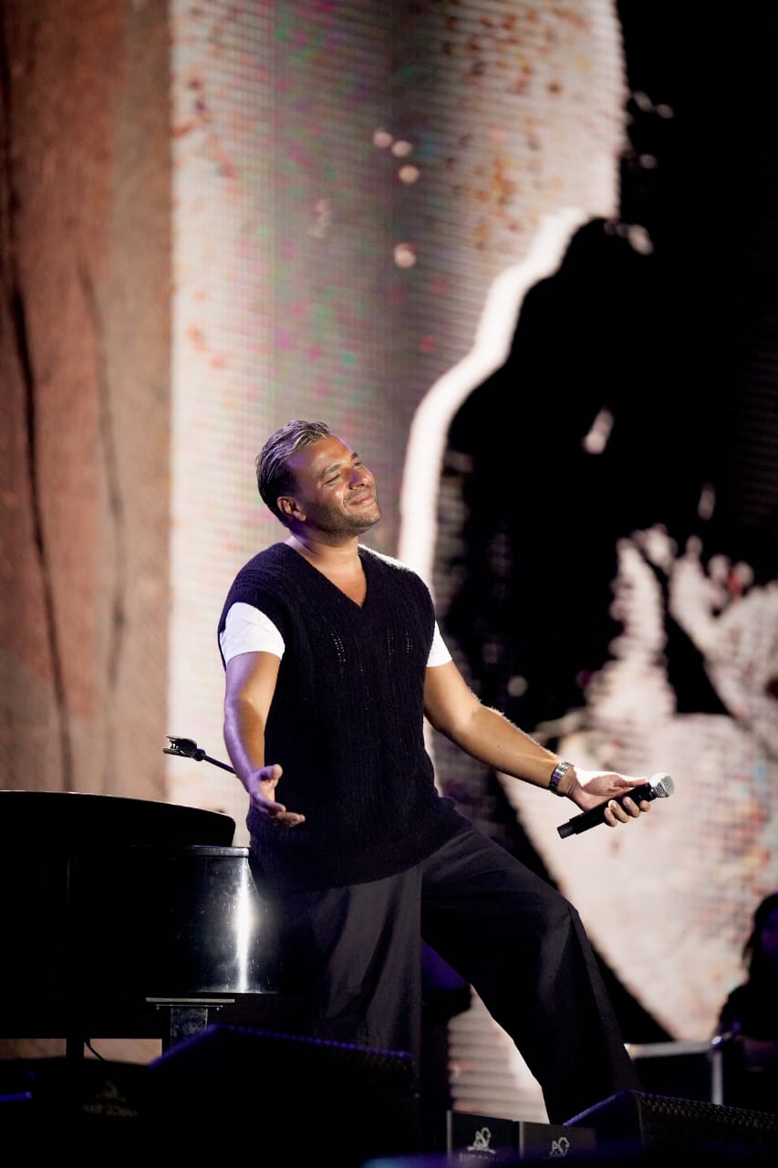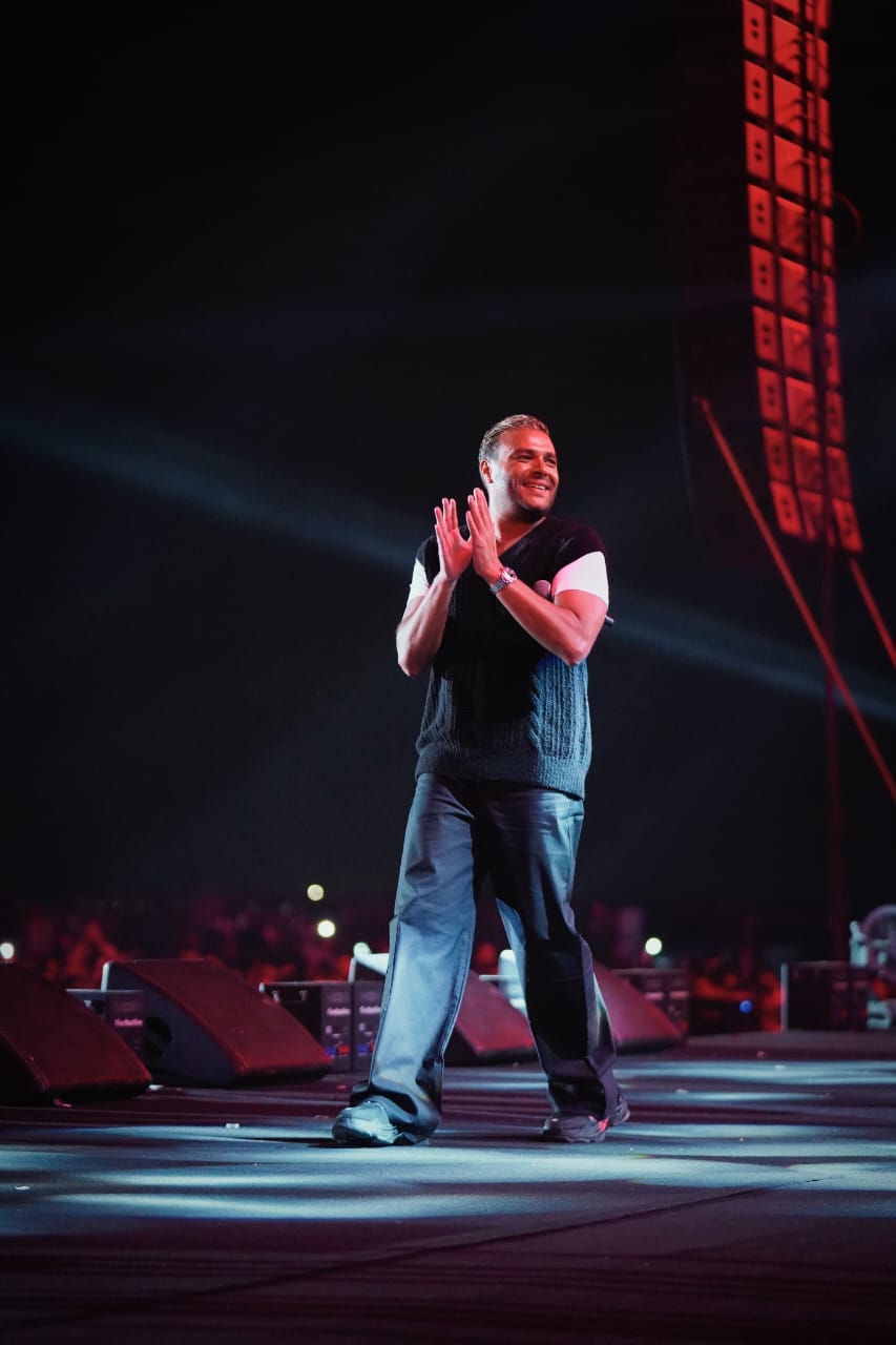 صعد رامي على خشبة مسرح تعد الاضخم فى تاريخ حفلات الارينا وبشكل مبهر على مصعد هيدروليكي من اسفل إلى أعلي بمنتصف المسرح ومرددا أغنية "كل حاجة فيها حلوة" وسط حالة من هتافات وصيحات وهتافات الإعجاب.