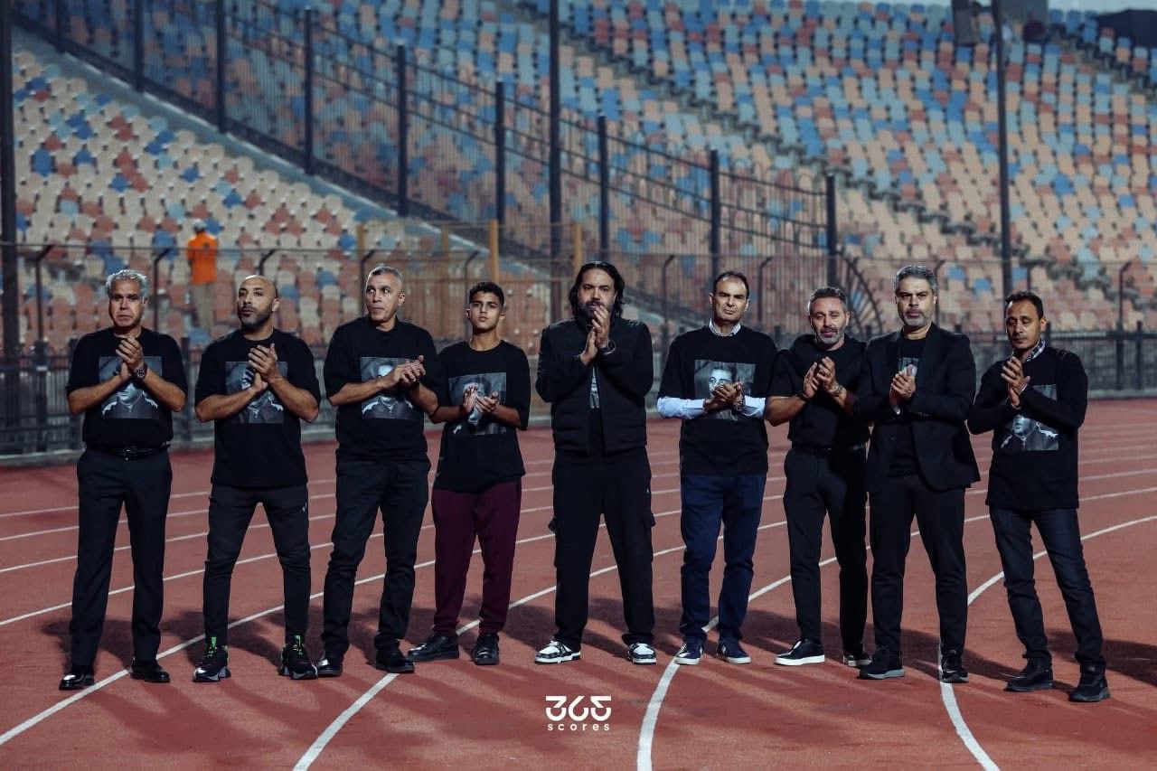 وتوجه النجوم القدامى إلى الجماهير قبل انطلاق المباراة وهم يرتدون قمصانًا سوداء تحمل صورة محمد صبري، في لفتة إنسانية تعكس تقديرهم الكبير لما قدمه الراحل للنادي عبر مسيرته الحافلة.