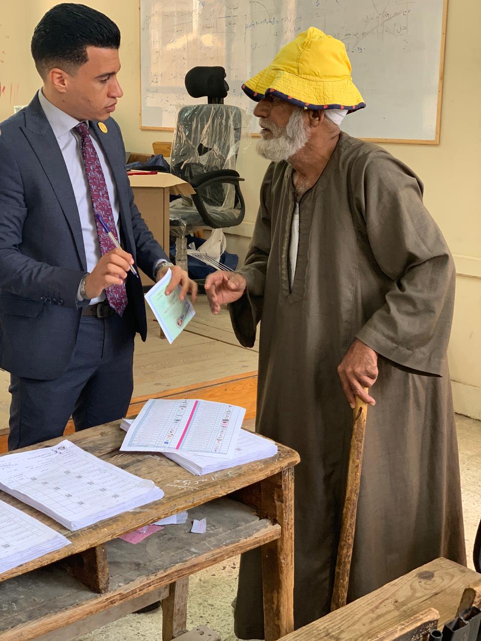 وشهدت اللجنة قدوم أحد الناخبين من ذوي الاعاقة البصرية وحرص المستشار علي مساعدته في الإدلاء بصوته
