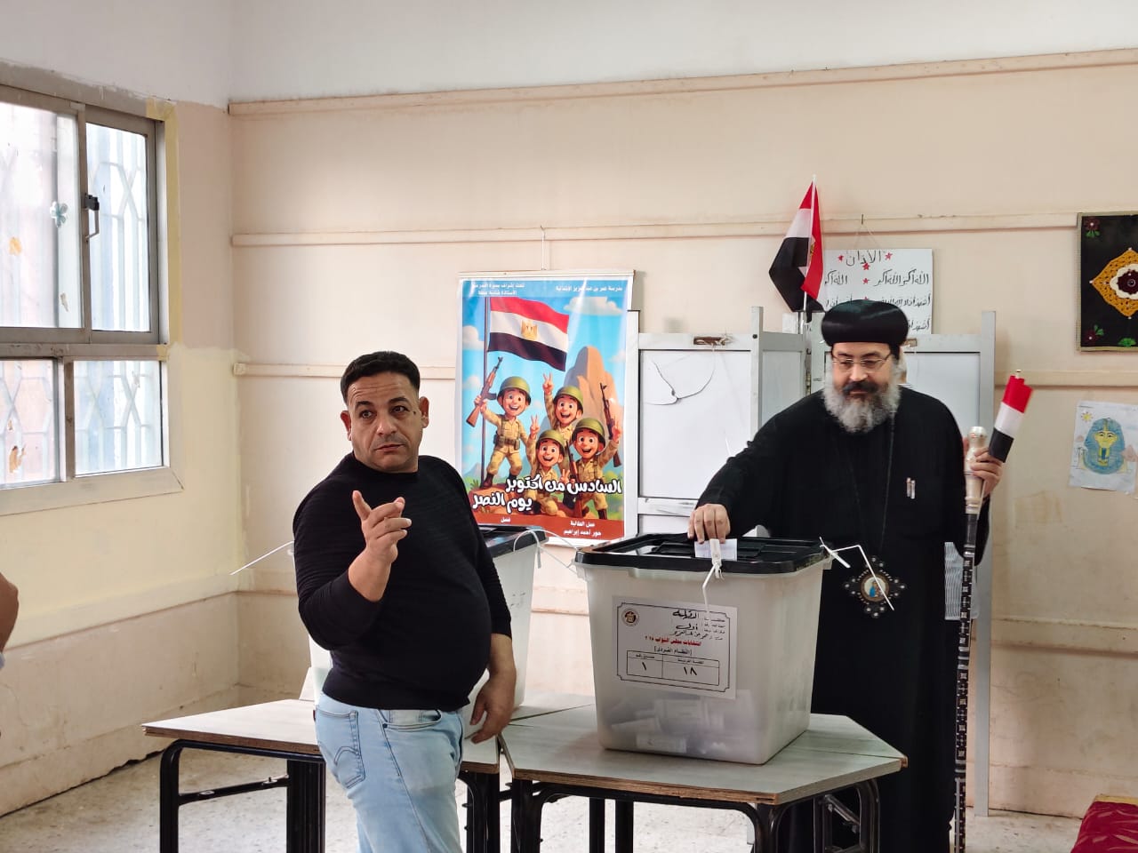 أدلى الانبا اكسيوس، اسقف المنصورة وتوابعها، بصوته فى انتخابات مجلس النواب بلجنة مدرسة عمر بن عبدالعزيز الابتدائية بشارع الجلاء بمدينة المنصورة.