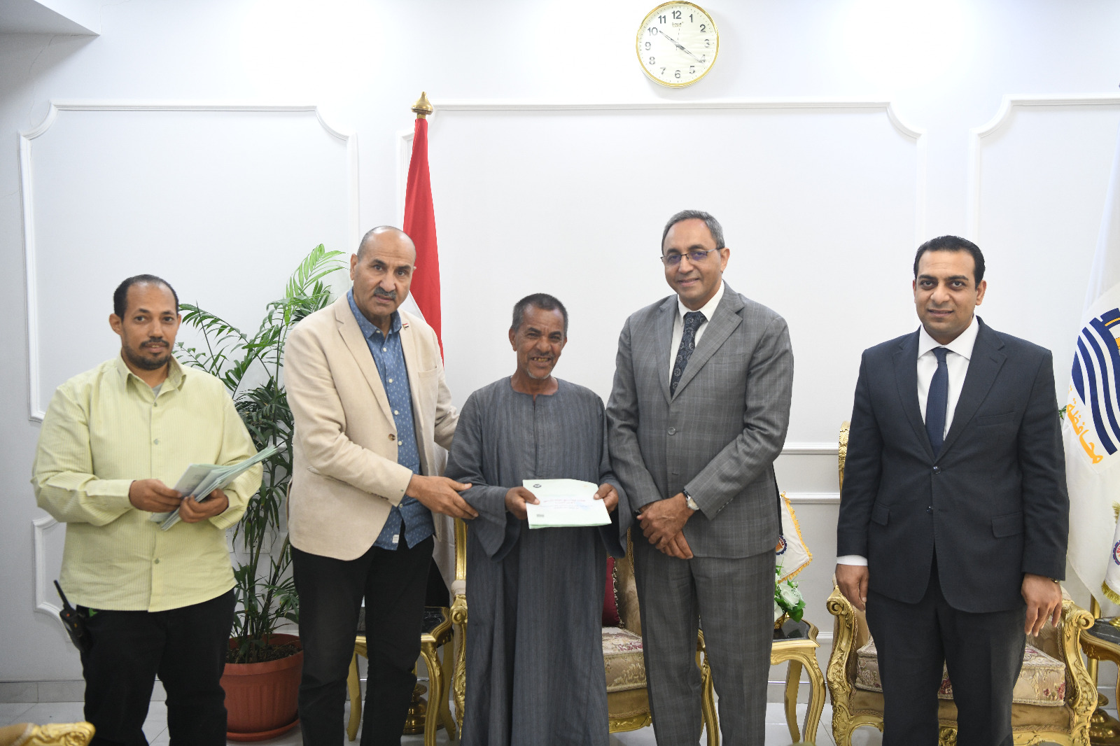 سلم الدكتور خالد عبد الحليم، محافظ قنا، 5 عقود تقنين أراضٍ مملوكة للدولة مقام عليها مباني خاصة بالمواطنين من واضعي اليد، وذلك بعد استيفاء جميع الإجراءات القانونية من فحص ومعاينة وتحقق من توافر الضوابط المقررة.
