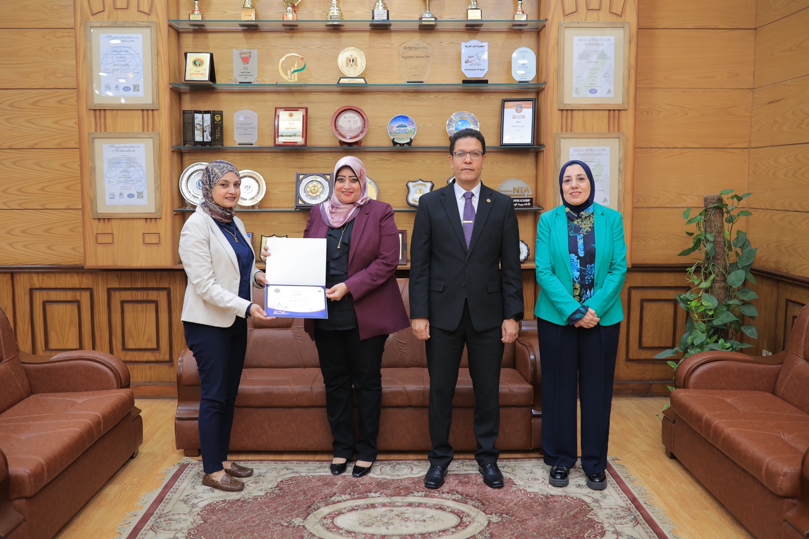 جاء ذلك بحضور الدكتورة جيهان عبد الهادي نائب رئيس الجامعة لشئون الدراسات العليا والبحوث، والدكتور عبد القادر عبد الكريم منسق عام الجودة الإدارية بالجامعة ورئيس الفريق، والدكتورة ميرفت كوزمن خبيرة التدريب لجوائز التميز الحكومي، ورانيا معتز أمين مساعد الجامعة لشئون خدمة المجتمع وتنمية البيئة ومنسق الجائزة بالجامعة، وأحمد حسني عضو وحدة نظم الجودة الإدارية ومسئول الاتصال، وفريق المقيمين المدربين للتميز الحكومي بالجامعة.
