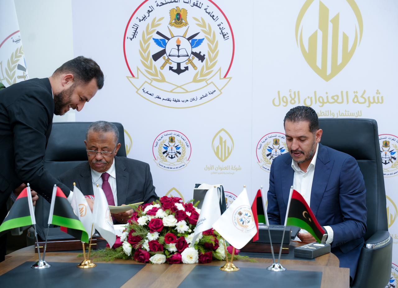 أُجريت الأسبوع الماضي مراسم توقيع عقد استثماري بين شركة العنوان الأول للاستثمار والتطوير، ممثلةً بمديرها الدكتور إيهاب العيادي، والمفوض العام للمدينة العسكرية الفريق عبدالله الثني، بهدف الاستثمار وإقامة مشروع المدينة الصناعية قمينس، الذي يُعد أحد المشاريع الصناعية الرائدة في ليبيا.