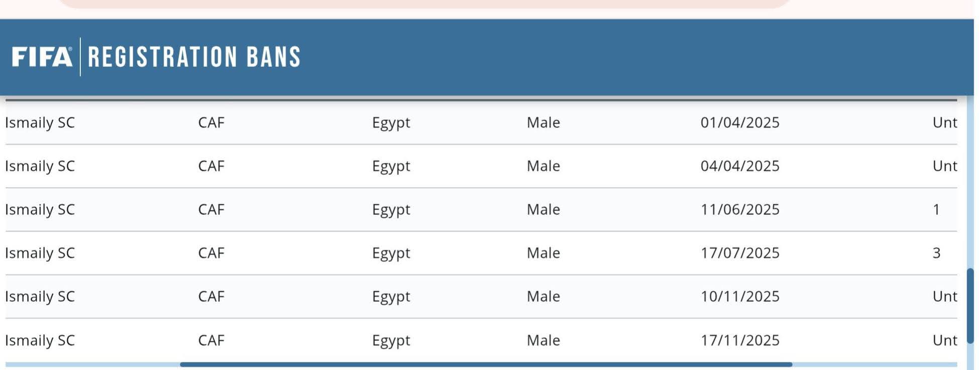 وقرر الاتحاد الدولي لكرة القدم (الفيفا) إيقاف قيد النادي الإسماعيلي لحين سداد مستحقات البوليفي كارميلو وفقا للقرار الصادر من جانب الفيفا.