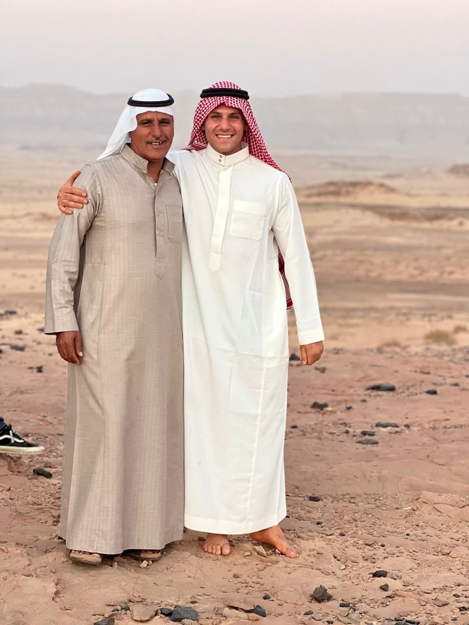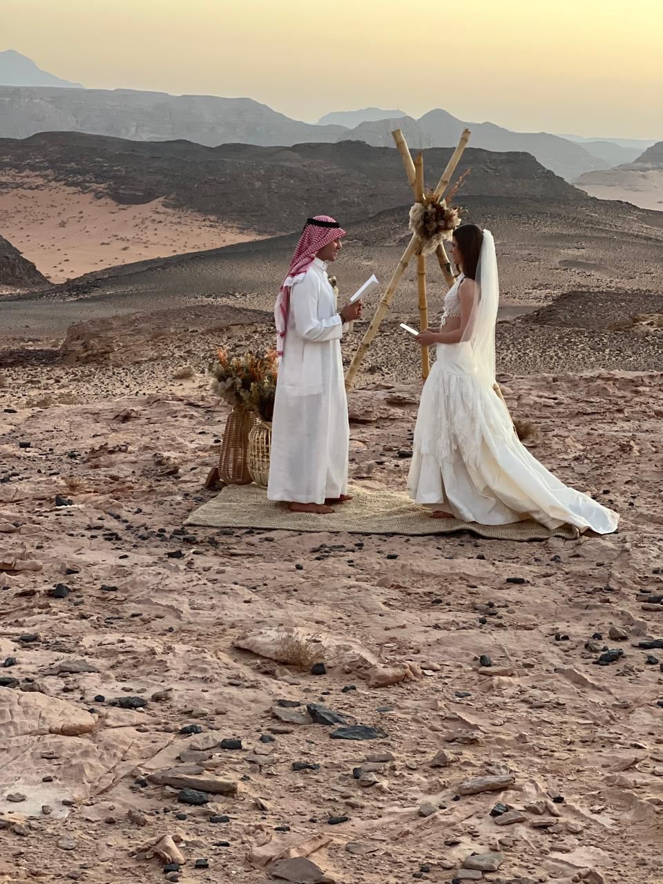 العريس محمد أحمد محمد، المعروف بعشقه للطبيعة، أمضى أيام زفافه في أجواء أشبه برحلة شهر عسل وسط الجبال الهادئة والصحراء الممتدة، ليصبح الاحتفال أقرب إلى تجربة روحية فريدة.