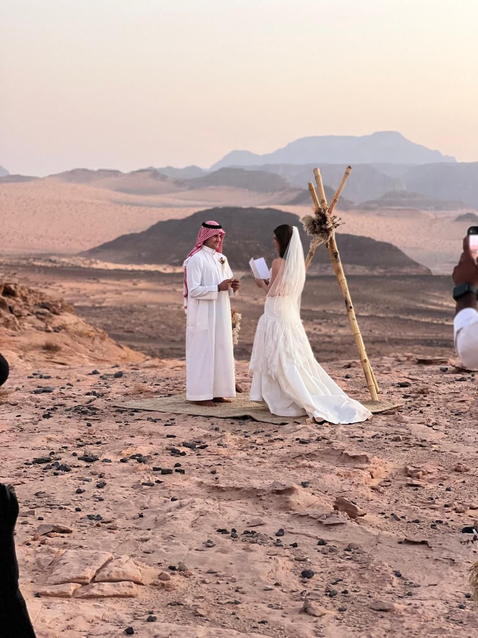 أقيم الزفاف داخل المخيم البيئي “بيت بركات” بسـرابيط الخادم، بحضور ربيع بركات، الذي يشتهر بتقديم تجارب بدوية أصيلة للزوار، ويساهم في صناعة لحظات تُروى ولا تُنسى، عبر أجواء تحمل هوية المكان وأصالته.