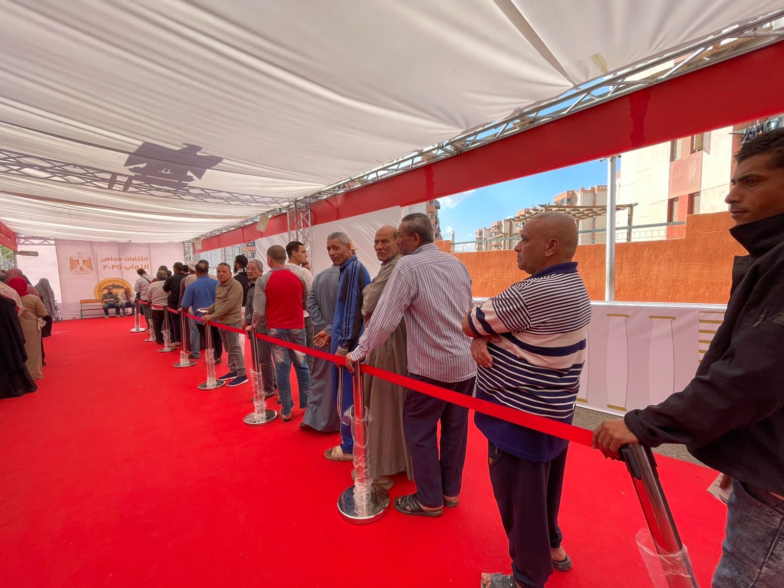 وحرص المواطنين، على الادلاء باصواتهم في طوابير منتظمة للتسهيل والتيسير على الجميع داخل اللجنة الانتخابية ليعكسوا مظهر حضاري لليوم الديمقراطي.