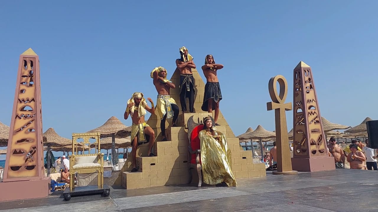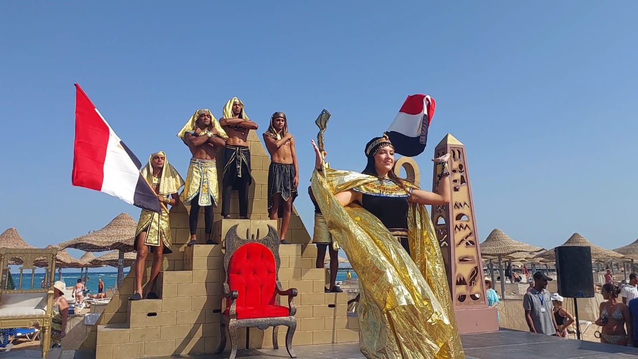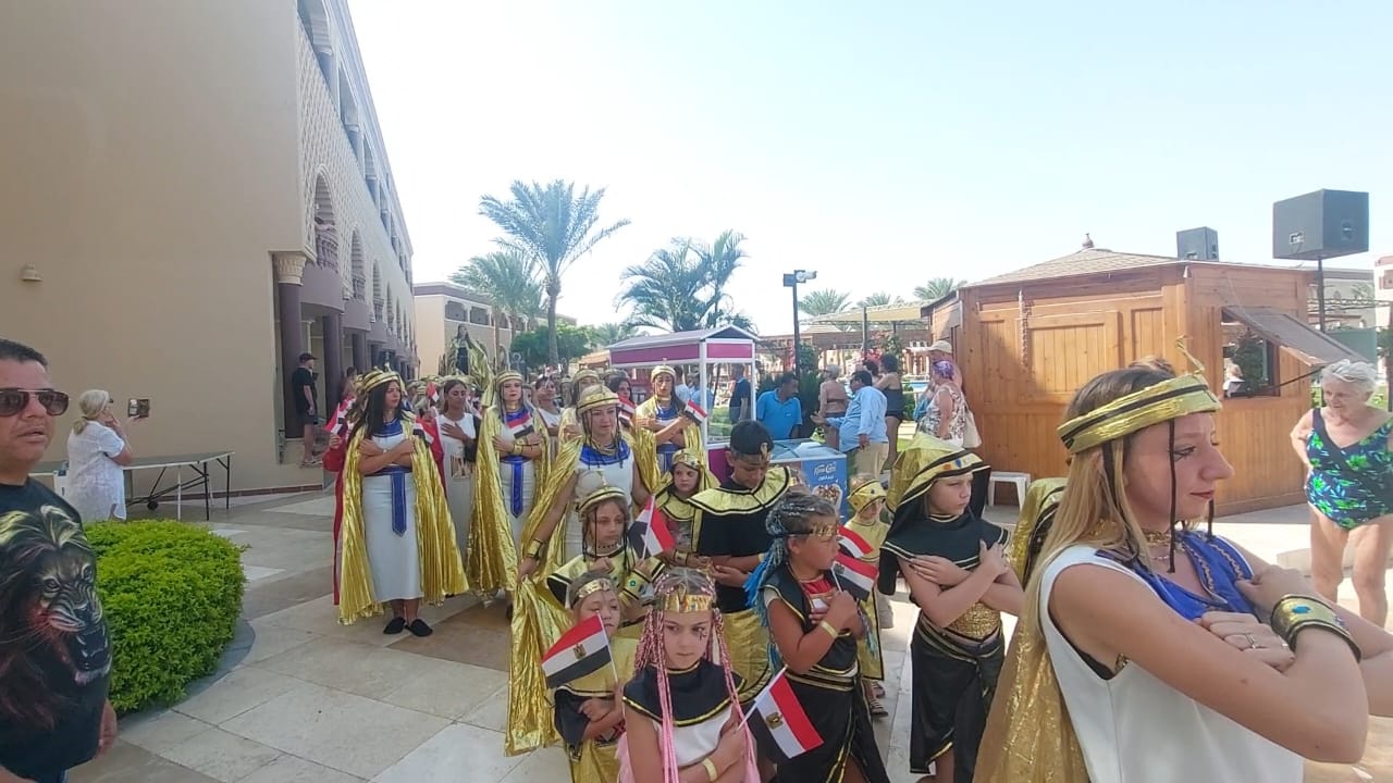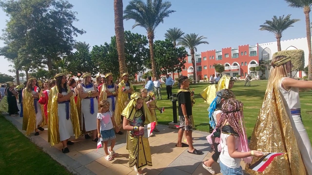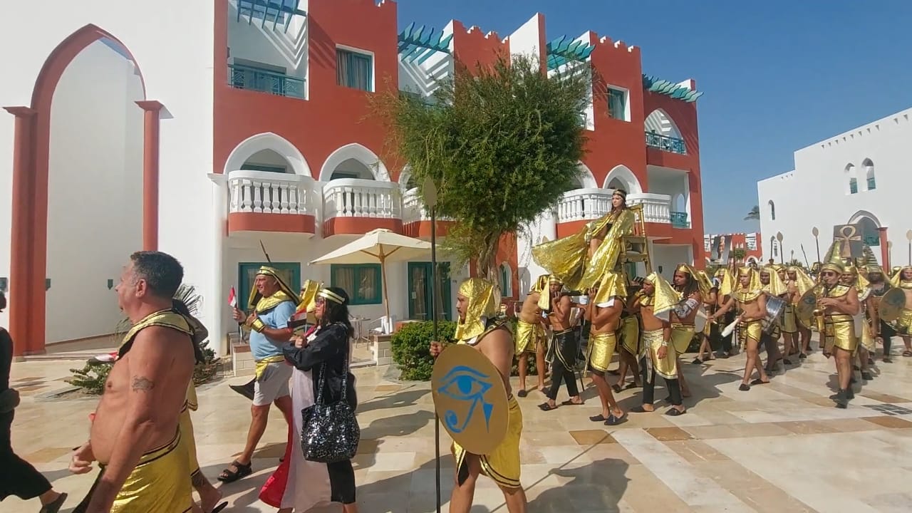 نظمت فنادق الغردقة اليوم "الثلاثاء" مسيرة فرعونية بمشاركة مئات السياح بالإضافة لعدد من العاملين بالقطاع السياحي، مرتدين الملابس الفرعونية، وذلك لدعم افتتاح المتحف المصري الكبير حيث طافت المسيرة عدد من مناطق بالفنادق وصولا إلى الشاطئ.