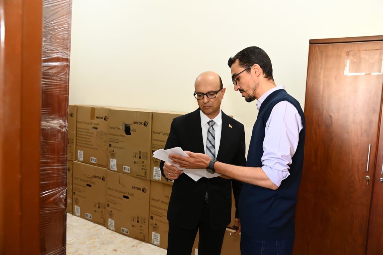 جاء ذلك بحضور الدكتور علي حسين، مدير مركز نظم المعلومات الإدارية بالجامعة، و غريب خيري ذكي، مدير عام إدارة العلاقات العامة والإعلام، و مصطفى شعيب، المشرف على مجمع الخدمات.
