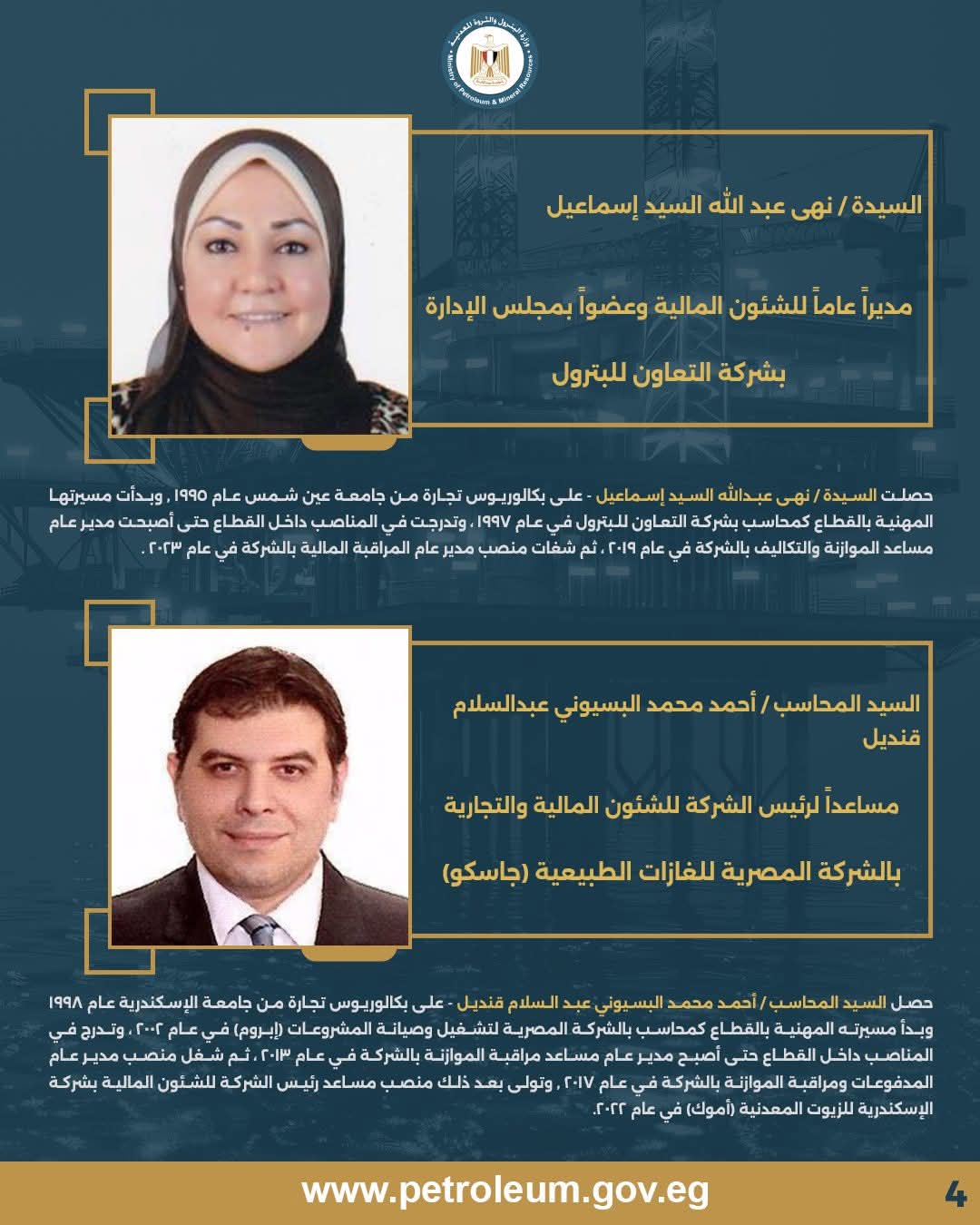 أصدر المهندس كريم بدوي وزير البترول والثروة المعدنية حركة تنقلات بين قيادات الشئون المالية، شملت تعيين نائب للعضو المنتدب التنفيذي لـ الشركة المصرية القابضة للغازات الطبيعية "إيجاس" للشئون المالية، إلى جانب تكليف مساعدي رؤساء الشركات ومديري عموم الشئون المالية في عدد من شركات قطاع البترول .