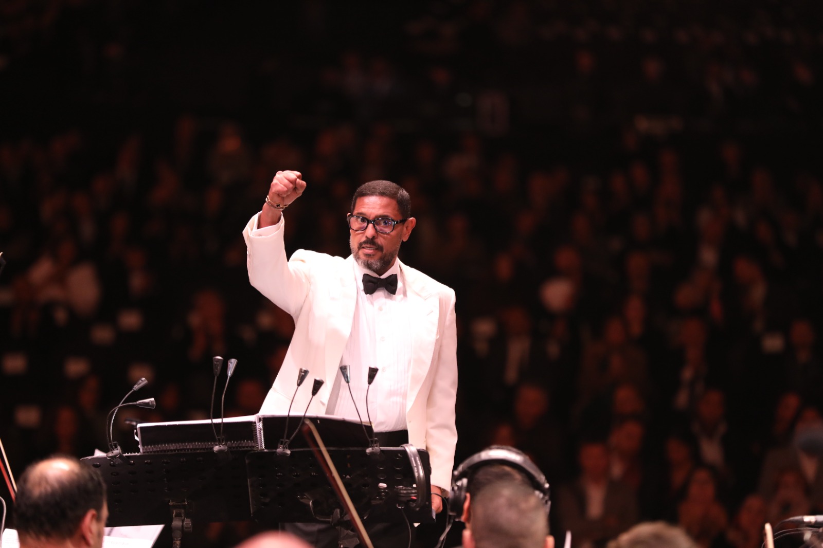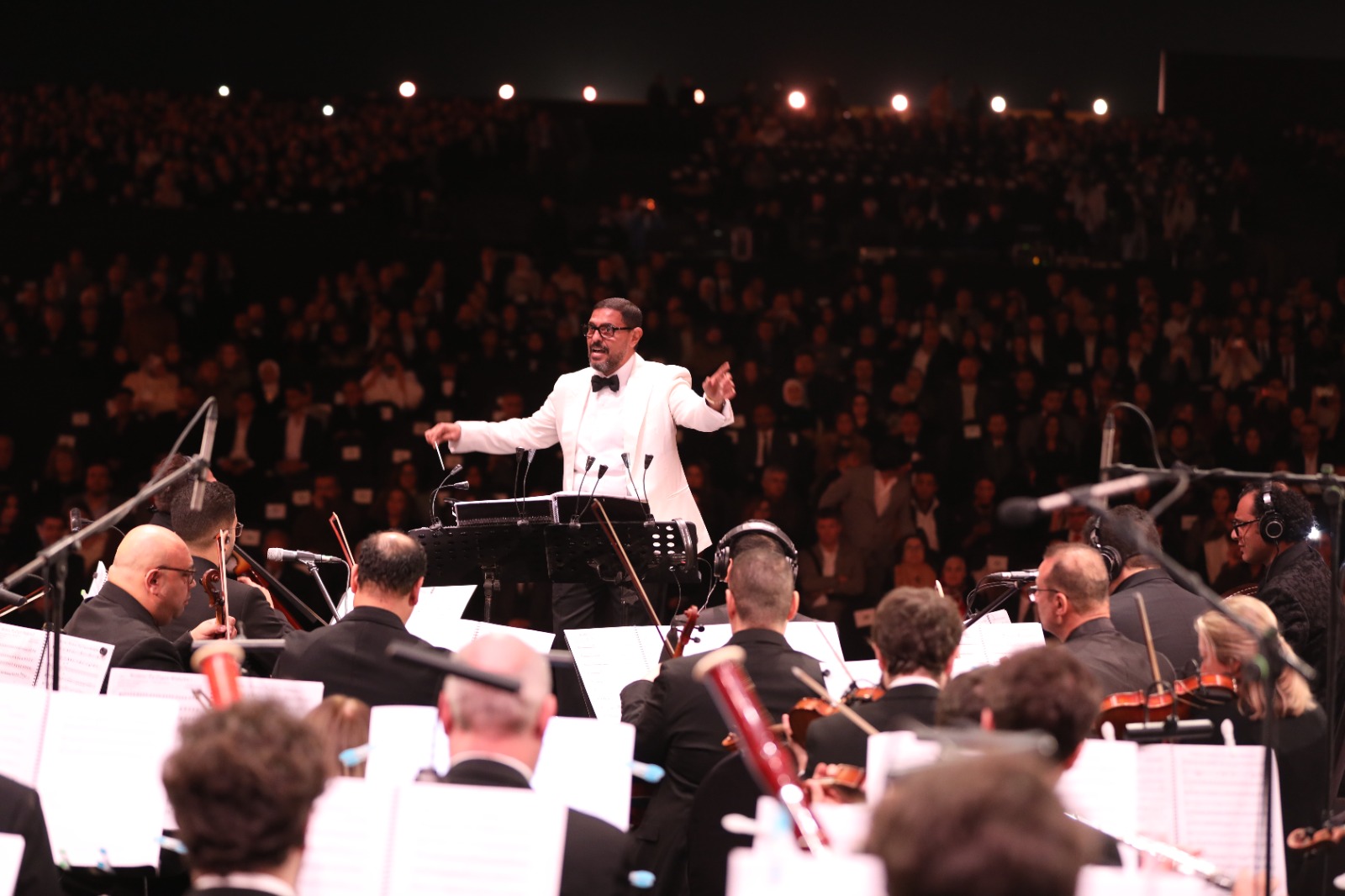 ليلة استثنائية أحياها المايسترو هاني فرحات والأوركسترا الملكي البريطاني في حفل كامل العدد بمنطقة الأهرامات الأثرية.