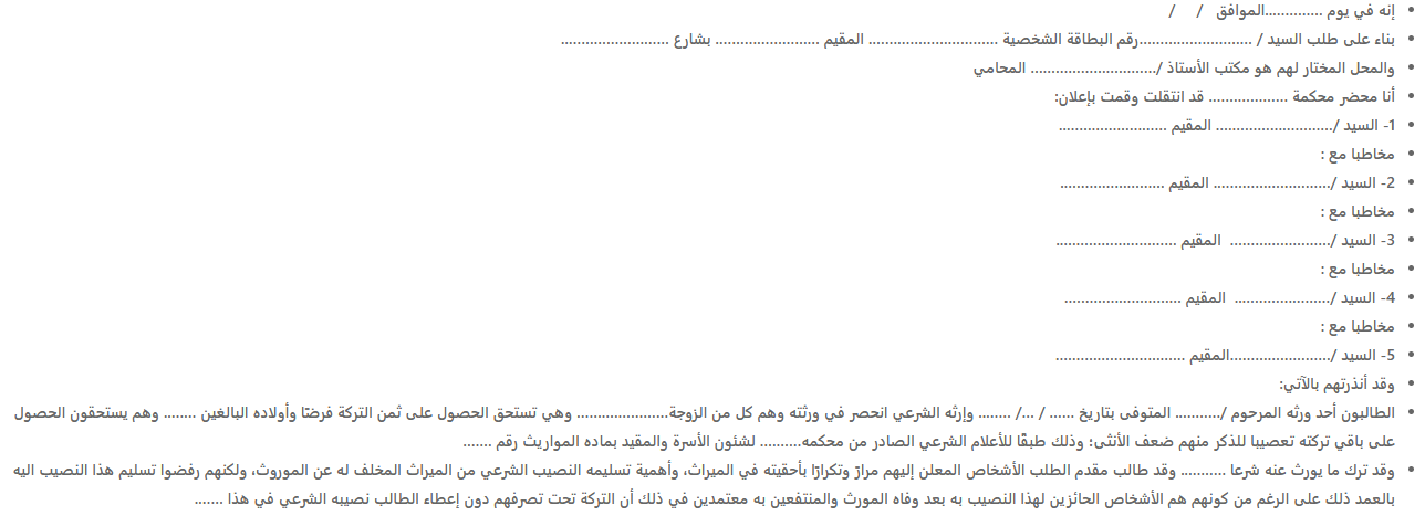 ـ إشعار بالميراث يوضح الورثة الشرعيين.