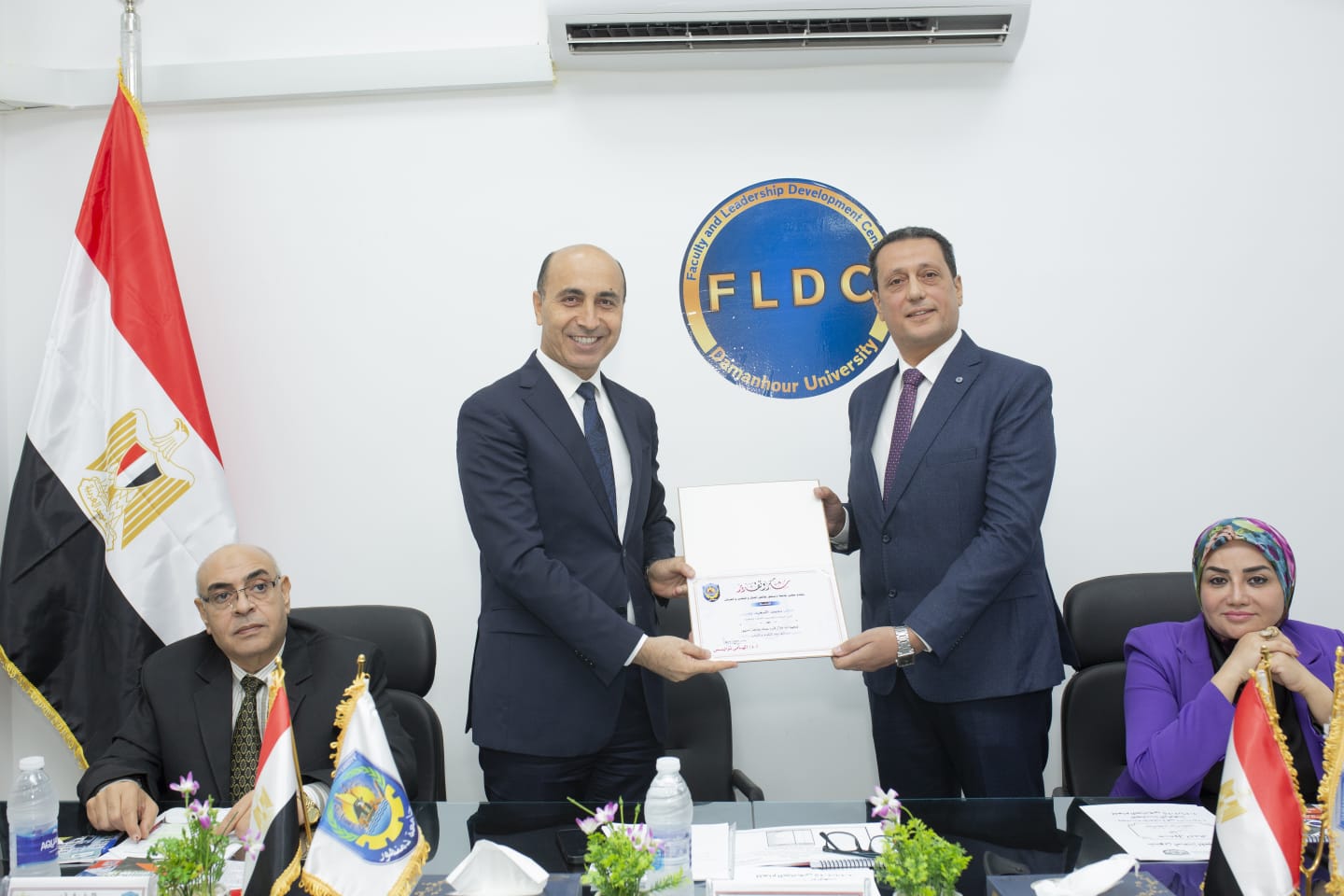 كما شهد المجلس تسليم شهادة اعتماد مركز تنمية قدرات أعضاء هيئة التدريس والقيادات، مهنئا أسرة المركز بقيادة الدكتورة أمل غنيم، المدير التنفيذي للمركز، وجميع منتسبي الجامعة، وأشار "ترابيس" إلى أن اعتماد مركز تنمية قدرات أعضاء هيئة التدريس والقيادات يعد اعترافا رسميا بجودة وأداء المركز في مجال تدريب وتأهيل أعضاء هيئة التدريس والقيادات، مع التأكيد على حرص جامعة دمنهور وسعيها المستمر لتطوير منظومة التنمية البشرية لمنسوبيها وسعيها إلى تحقيق رسالة مركز تنمية قدرات أعضاء هيئة التدريس والقيادات في تقديم تدريب مهني يستوفي المعايير القياسية الدولية بما يضمن تحقيق أهدافه.