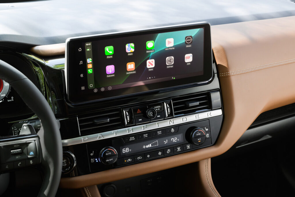 وتم تطوير الشحن اللاسلكي بـ سيارة نيسان باثفايندر موديل 2026 ليصبح أسرع بـ 3 مرات من السابق بقدرة تصل إلى 15 واط، مع إضافة مروحة تبريد داخلية وآلية تثبيت لإبقاء الهاتف في المكان المثالي أثناء الشحن.