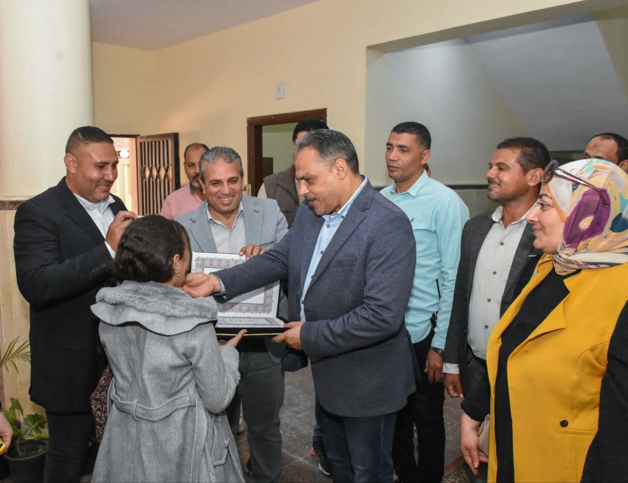 وفي لفتة طيبة أهدي العاملون بالوحدة نسخة من كتاب الله للمحافظ تقديراً لمجهوداته المستمرة في الارتقاء بكافة الخدمات المقدمة لأبناء المحافظة بمختلف القطاعات الخدمية والتنموية.