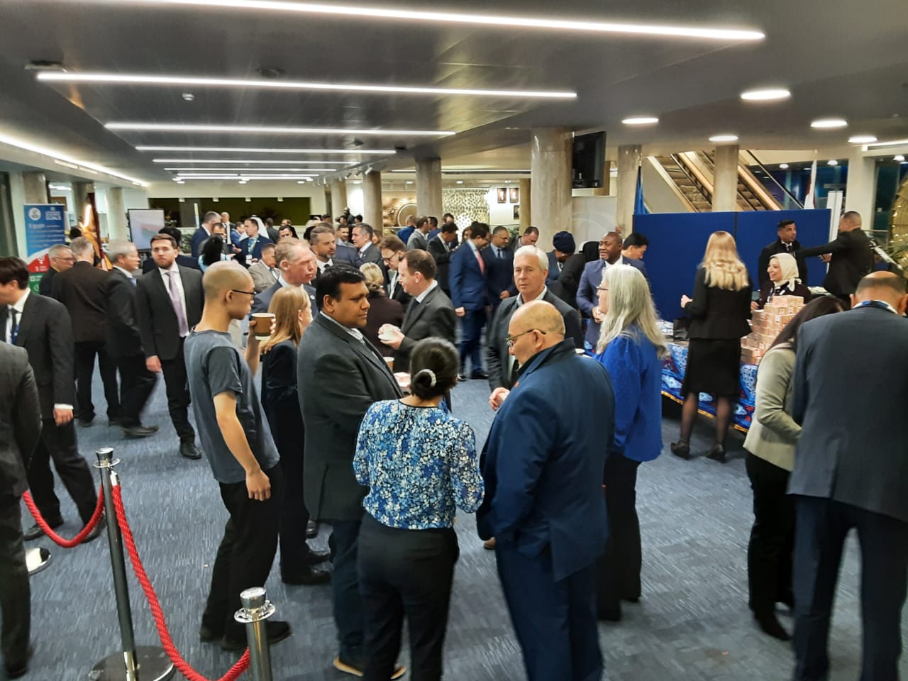 كما شهد حفل الاستقبال حضور أريسينو دومينغيز الامين العام للمنظمة البحرية الدولية و الذي اشاد بدور مصر الكبير في مجال النقل البحري وحركة التجارة العالمية