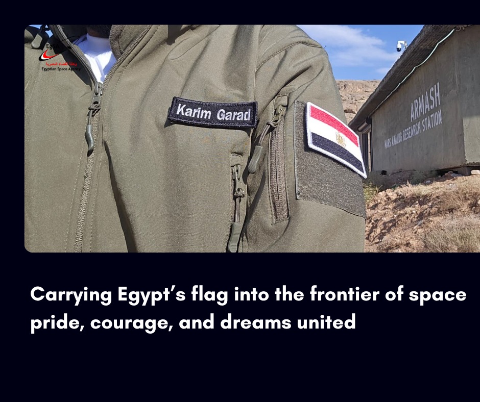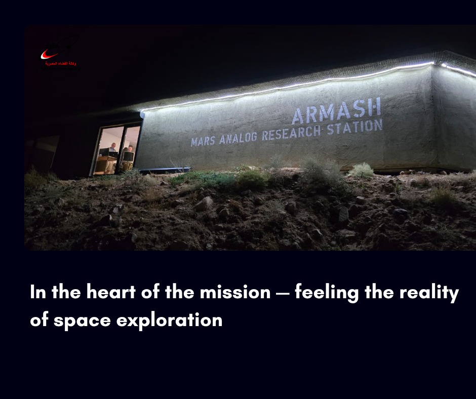 ليس تدريبًا، وليست تجربة مخبرية عادية، فقد مثل وكالة الفضاء المصرية في المهمة المهندس كريم جراد مهندس أنظمة، ونموذج محاكاه لرائد فضاء– في محطة Armaşh للأبحاث الفضائية، بالتعاون مع منتدى الفضاء الأرميني وشبكة دولية من المحطات النموذجية.