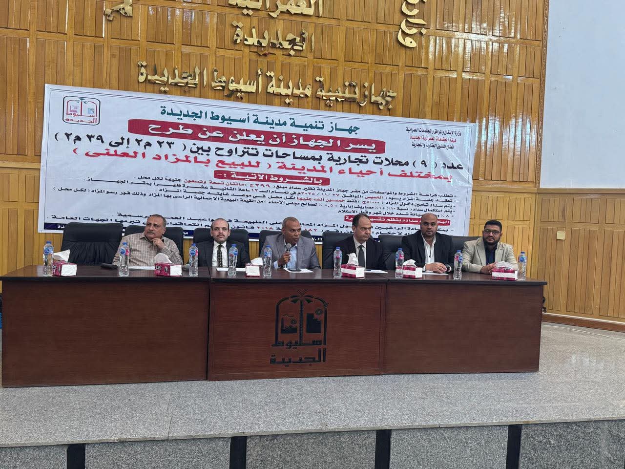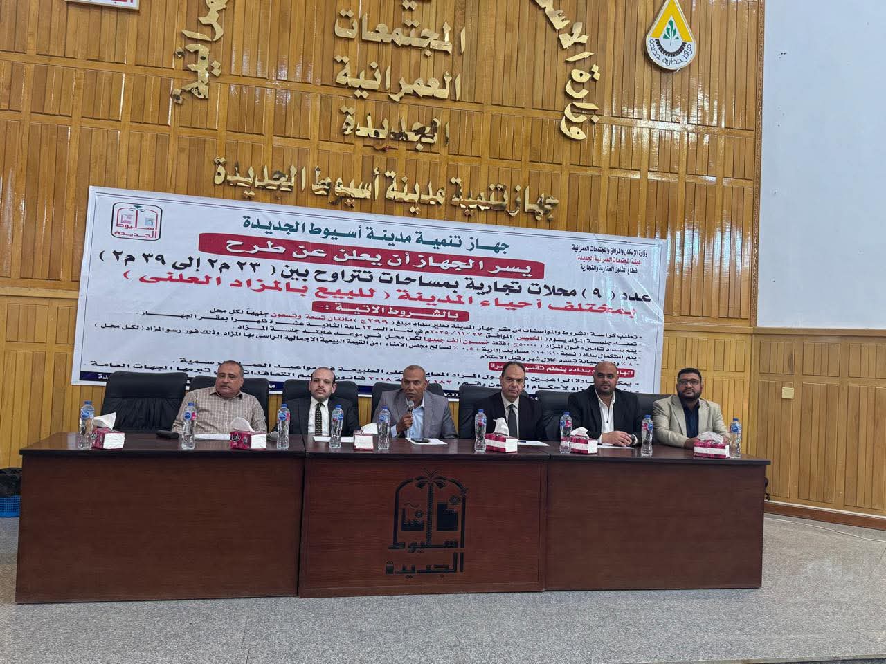 عقد جهاز تنمية مدينة أسيوط الجديدة، اليوم الخميس، جلسة مزاد علني لبيع عدد 9 محال تجارية بأنشطة متنوعة، وذلك في إطار توجيهات المهندس شريف الشربيني وزير الإسكان والمرافق والمجتمعات العمرانية بتعزيز الاستثمار وتوفير الخدمات داخل المدن الجديدة.