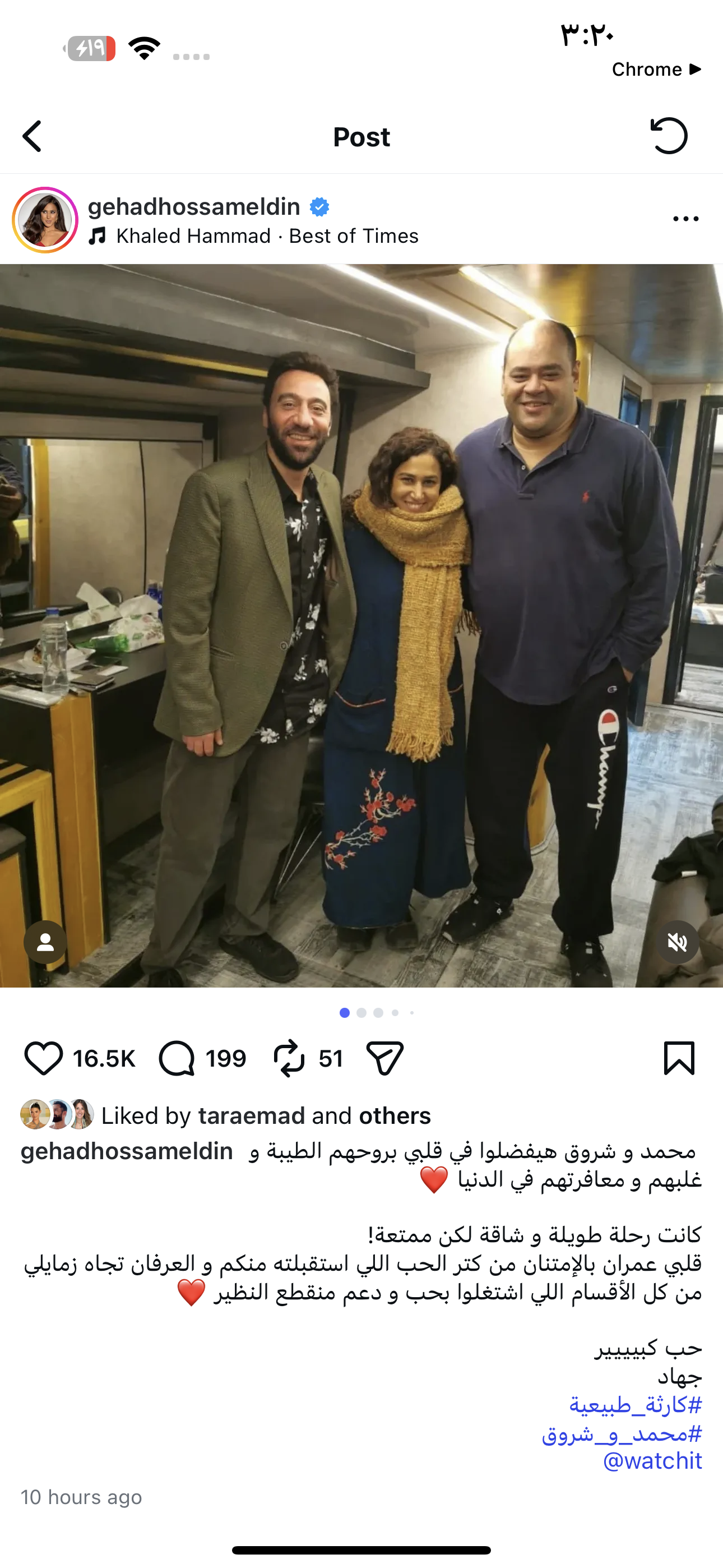 ونشرت جهاد عبر حسابها الرسمي على إنستجرام مجموعة من الصور من كواليس التصوير، وعلقت عليها قائلة: "محمد وشروق سيظلان دائمًا في قلبي بروحهما الطيبة وتواضعهما وإصرارهما في الحياة.. كانت رحلة طويلة وشاقة، لكنها مليئة بالمتعة والتجارب الرائعة".