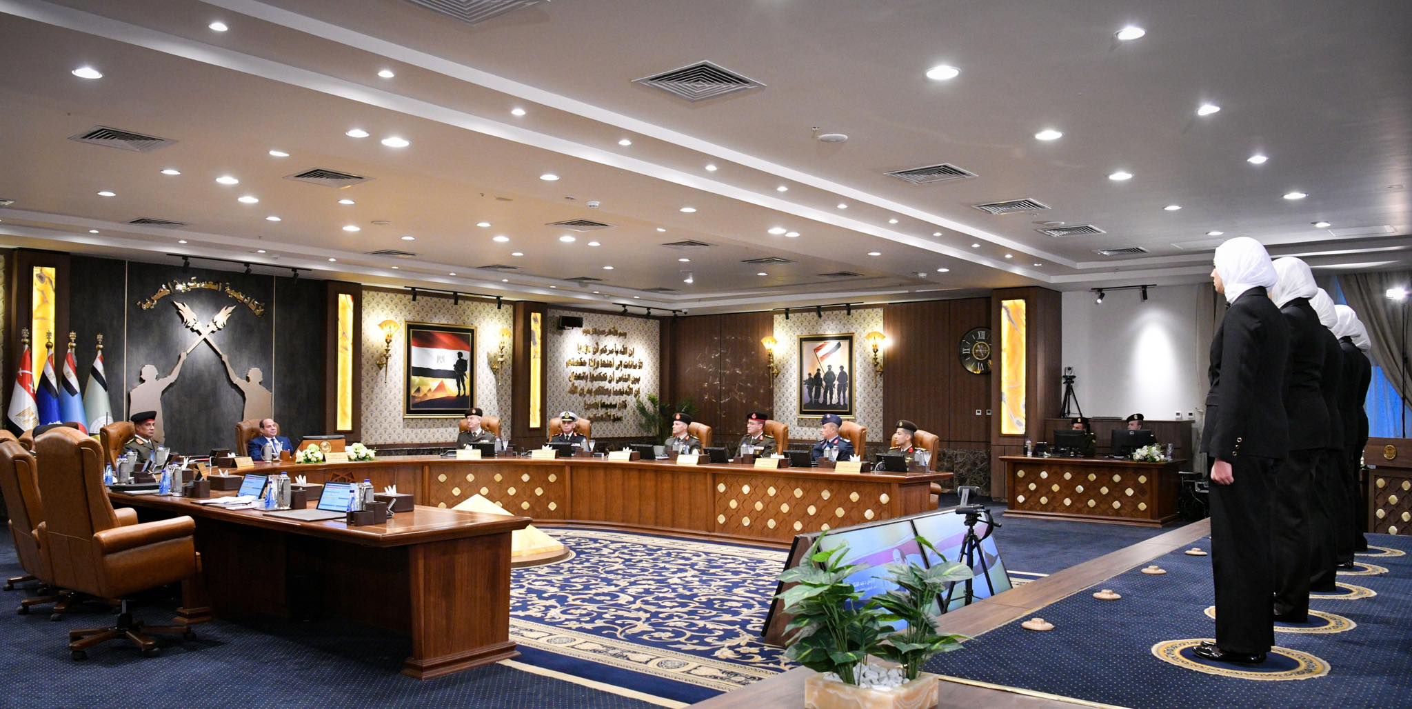 وعقب وصول الرئيس إلى قاعة مجلس الأكاديمية العسكرية المصرية، تم تقديم عرض عن موقف اختبارات الطلبة المُرشحين للقبول بالأكاديمية والكليات العسكرية دفعة أكتوبر 2025، ومع انتهاء العرض تقدم الطلبة لاختبار كشف الهيئة.