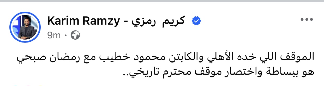 وكتب رمزي عبر حسابه الشخصي بموقع فيسبوك: “الموقف اللي خده الأهلي والكابتن محمود خطيب مع رمضان صبحي هو ببساطة واختصار موقف محترم تاريخي”.