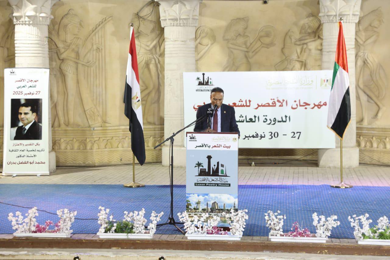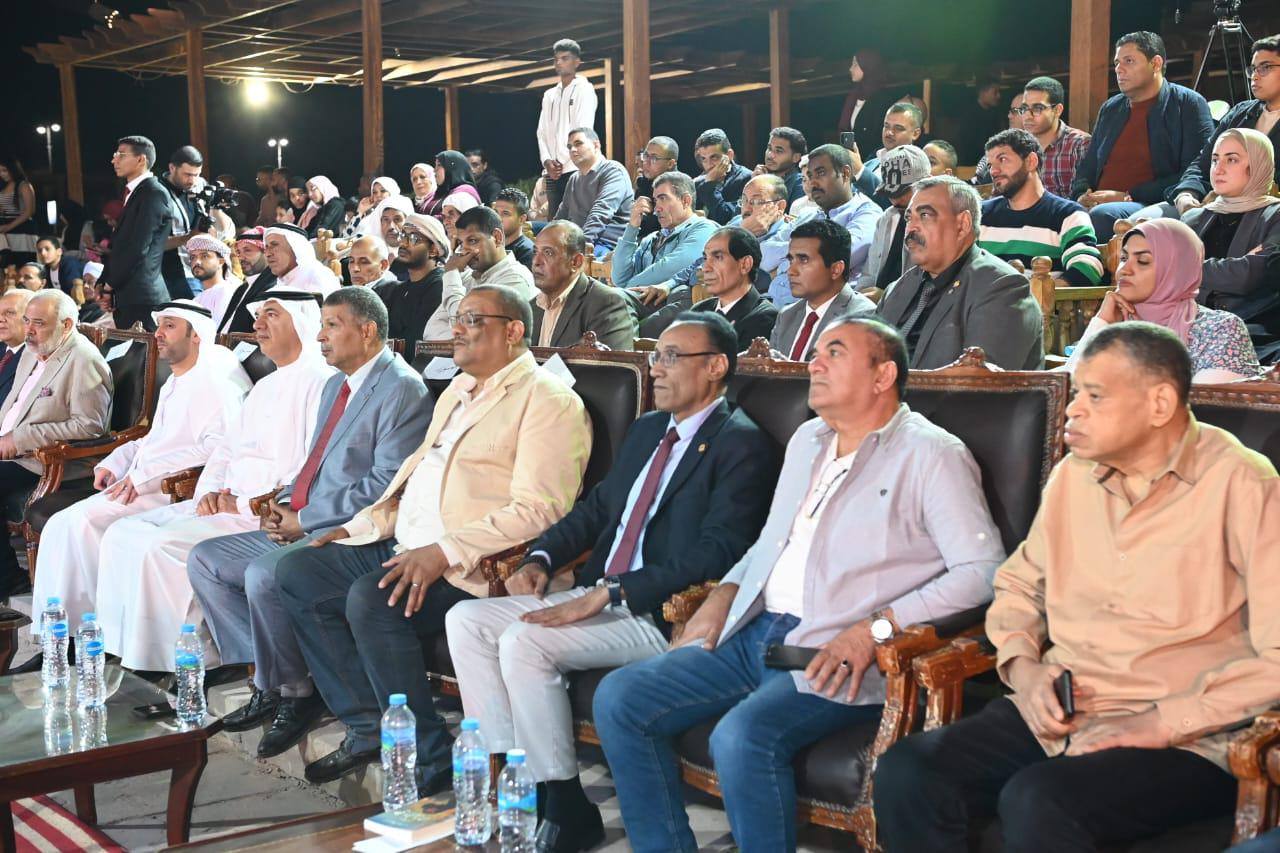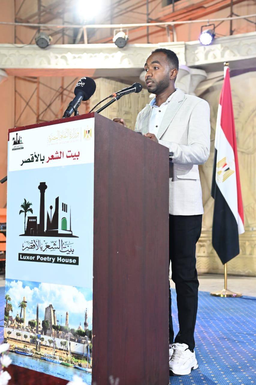 بعد افتتاح المعرض، تحدّث الشاعر حسين القباحي مدير بيت الشعر بالأقصر مرحِّبًا بضيوف الملتقى من الفنانين والشعراء والمبدعين، ومؤكدًا قيمة الفنون وتكاملها في تغذية الوجدان وصون الهوية العربية، وأشار القباحي إلى أن بيت الشعر بالأقصر حريص على عقد شراكات ثقافية متواصلة مع مختلف المؤسسات المعنية بالعمل الثقافي في الأقصر وسائر ربوع مصر، حيث سبق له التعاون مع مكتبات مصر العامة في الإسكندرية ومرسى مطروح ودمنهور، في تجارب تؤكد – كما قال – أن العمل الثقافي الحقيقي يحتاج إلى تكامل المنصات وتضافر الجهود. كما وجّه الشكر لجامعة الأزهر وللدكتور علاء جانب عميد كلية اللغة العربية بالقاهرة على التعاون في تنظيم دورة علوم العروض للناطقين بغير العربية، باعتبارها نموذجًا لتوسيع أثر الثقافة العربية خارج نطاقها الجغرافي واللغوي.