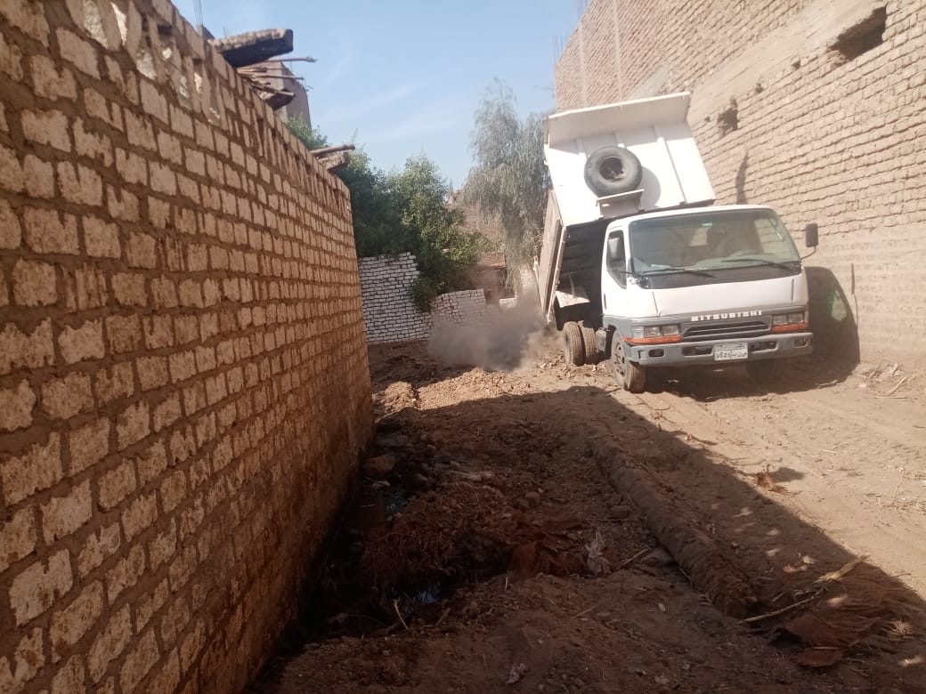 وفيما يتعلق بنجع بطران، فقد تم شفط المياه من البركة الموجودة بالمنطقة، وردم جزء كبير منها، بينما يجري استكمال ردم الجزء المتبقي بواسطة الأهالي، نظرًا لتعذر دخول معدات الوحدة المحلية لضيق الممرات المؤدية إلى الموقع.