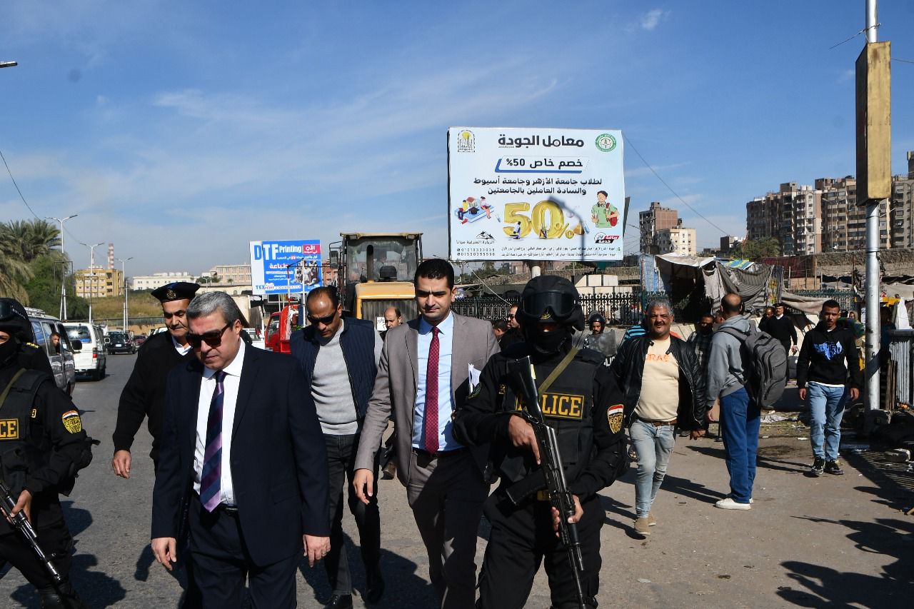 قاد اللواء وائل نصار مدير أمن أسيوط، اليوم السبت، حملة مكبرة لإزالة الاشغالات والتعديات الباعة الجائلين على حرم الطريق العام بحي شرق وغرب مدينة أسيوط،
