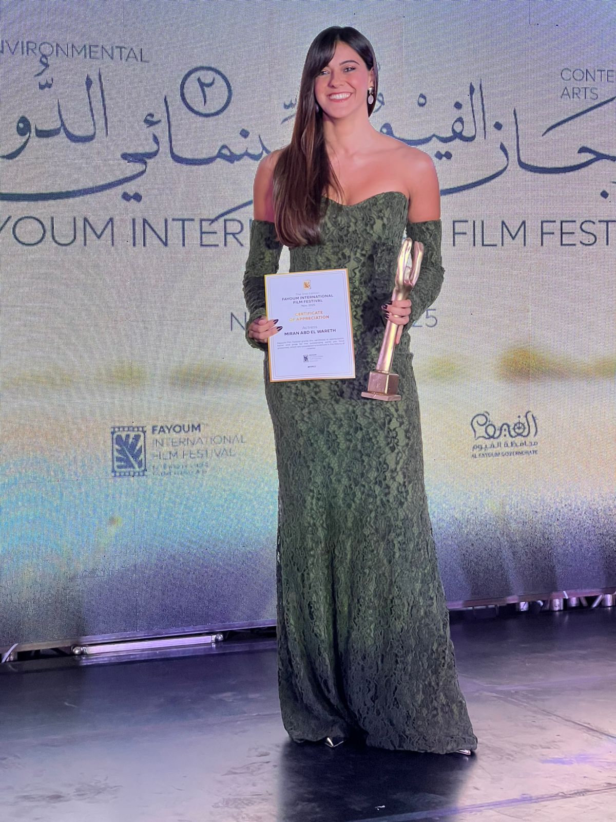 شهدت فعاليات ختام الدورة الثانية من مهرجان الفيوم الدولي لأفلام البيئة والفنون المعاصرة تكريم الفنانة الشابة ميران عبد الوارث، تقديراً لموهبتها وحضورها الفني المميز، وتشجيعاً لها كأحد الوجوه الصاعدة في الساحة الفنية خلال السنوات الأخيرة.