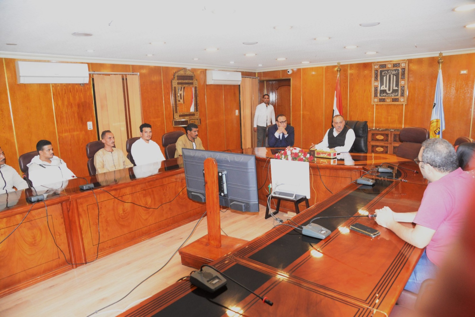 جاء ذلك خلال لقاءه بعدد من أصحاب كسارات البلاستيك، بحضور الدكتور مينا عماد نائب المحافظ، وهالة محمود فرغلي رئيس مجلس إدارة جمعية عطاء الخير لتنمية المجتمع، حيث تمت مناقشة أوضاع العاملين في هذا النشاط، وسبل توفيق أوضاعهم، وتسهيل الإجراءات القانونية اللازمة لاستخراج التراخيص.