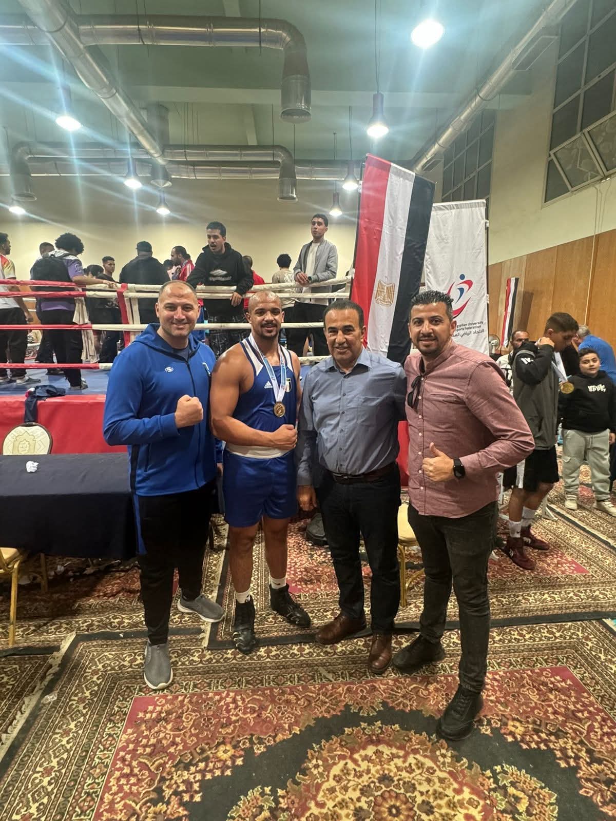 وثمن رئيس جامعة بورسعيد جهود أ.م.د احمد بيومي المشرف العام على قطاع رعاية الطلاب والجهاز الفني لمنتخب الجامعة أ.د محمود خليفة - المدير الفني لمنتخب الملاكمة أ.م.د محمد عبد الوهاب- مدرب منتخب الملاكمة أ. إسلام طه - إداري منتخب الملاكمة