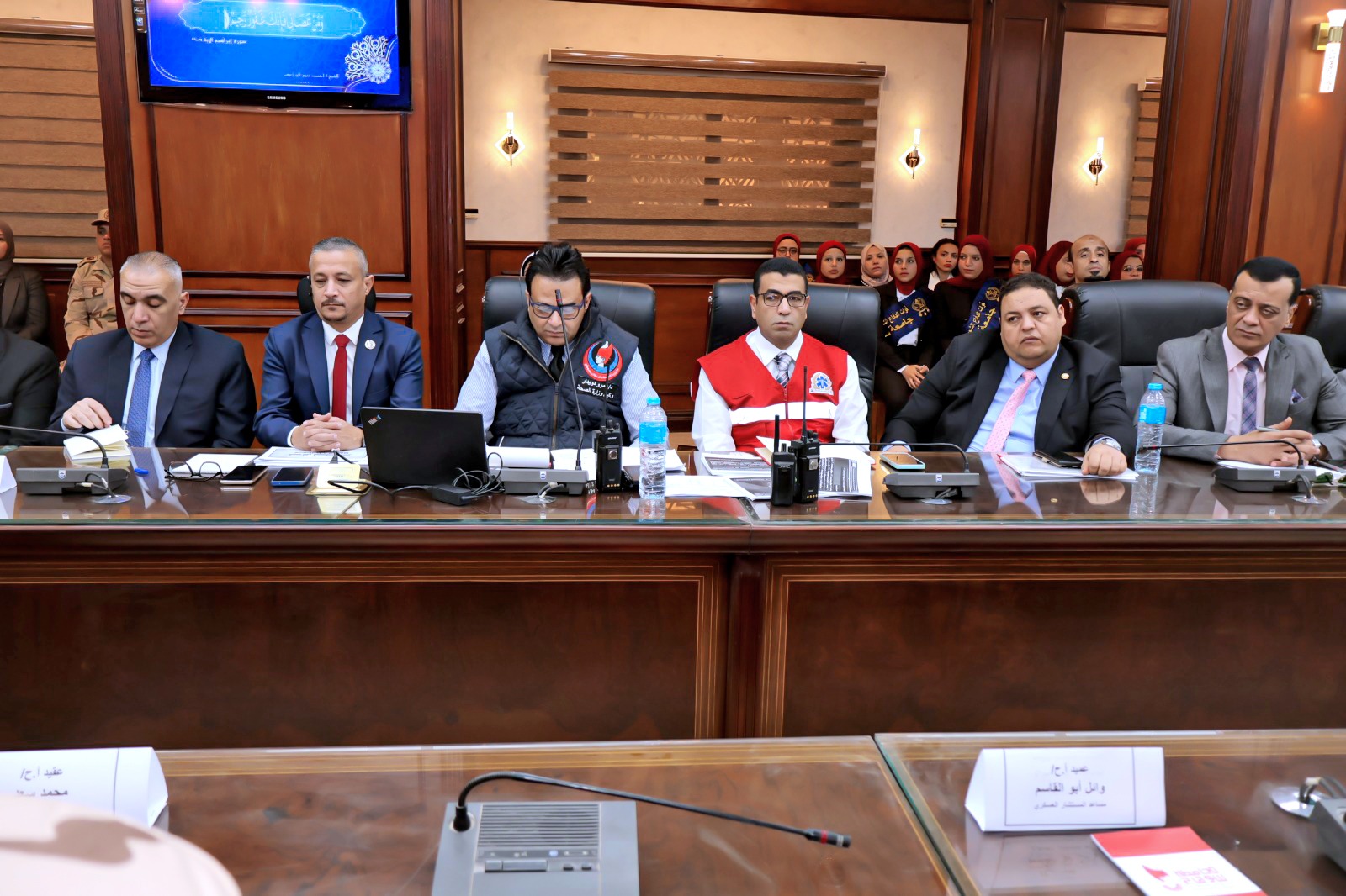 شهد اللواء دكتور عبد الفتاح سراج محافظ سوهاج، واللواء أح هشام حسني حسن قائد قوات الدفاع الشعبي والعسكري، اليوم، بقاعة " مينا " بديوان عام المحافظة، بدء فعاليات التدريب العملي المشترك لمجابهة الأزمات والكوارث صقر 159.