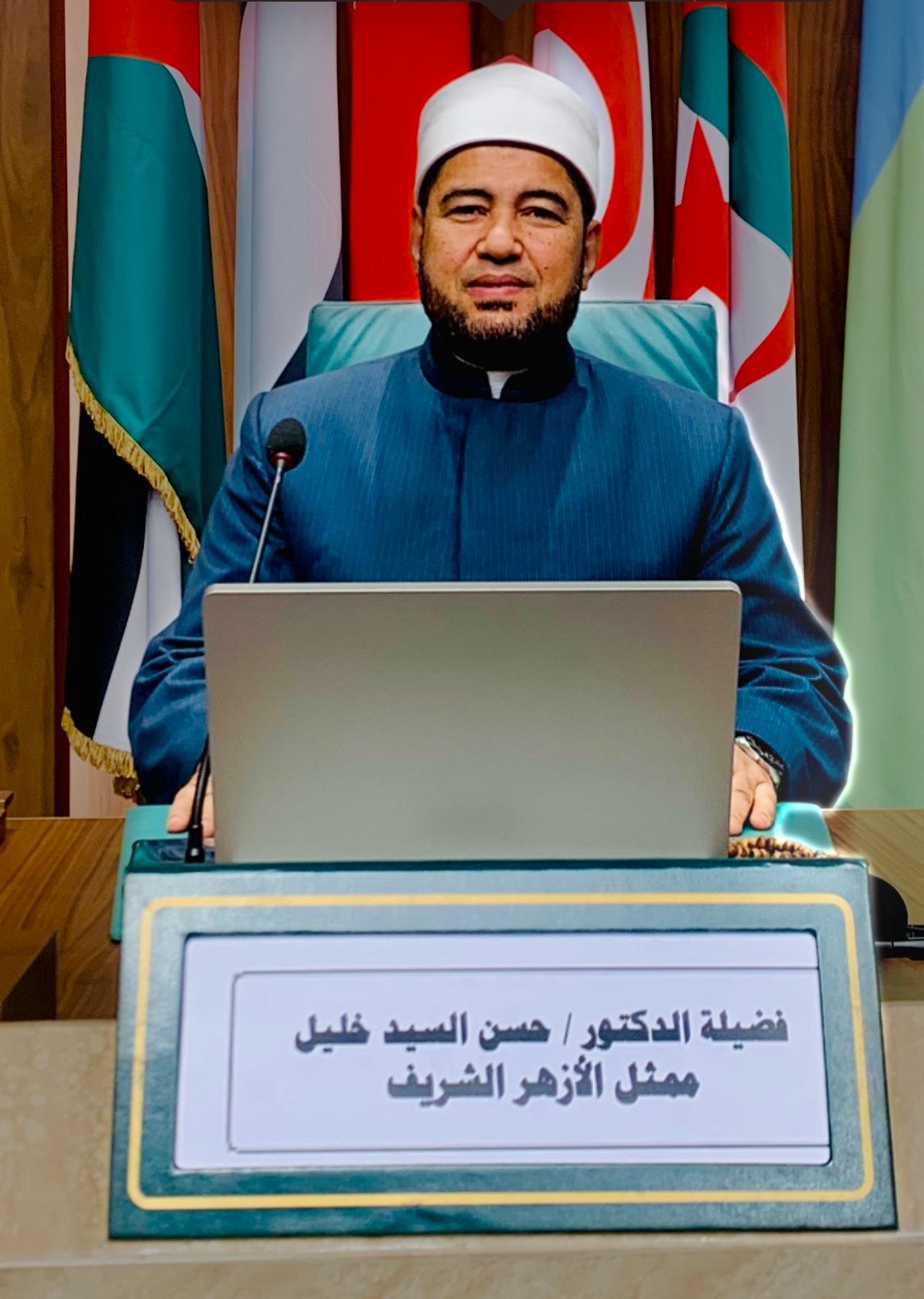 قدم الدكتور حسن السيد خليل، الأمين العام المساعد للثقافة الإسلامية بالأزهر الشريف، تحيات فضيلة الإمام الأكبر الدكتور أحمد الطيب شيخ الأزهر الشريف، وتمنياته للحضور وللشعب الفلسطيني بالتوفيق والسداد والرفعة.