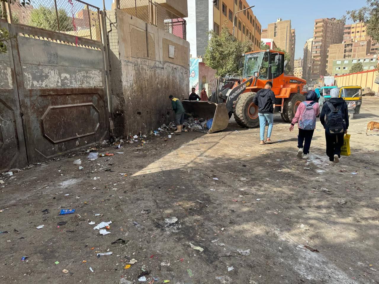 وشهدت الحملة الدفع بفرق وعمال النظافة التابعين لحي الهرم لتنفيذ أعمال التجريد ورفع التراكمات وتحسين حالة النظافة بالموقع بما يضمن ظهور المنطقة بالشكل الحضاري اللائق.