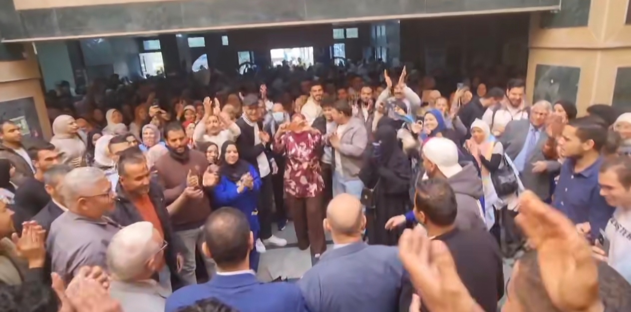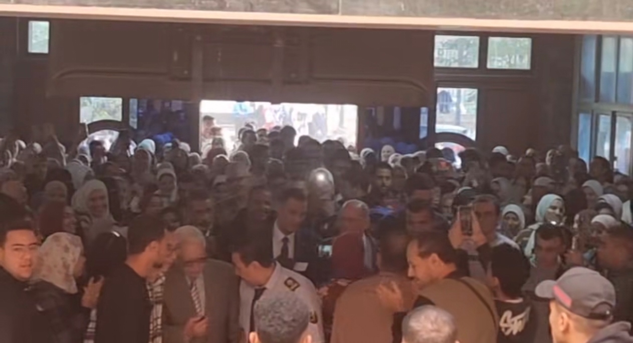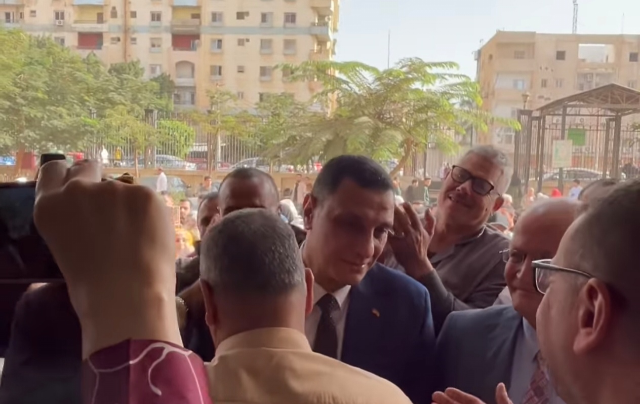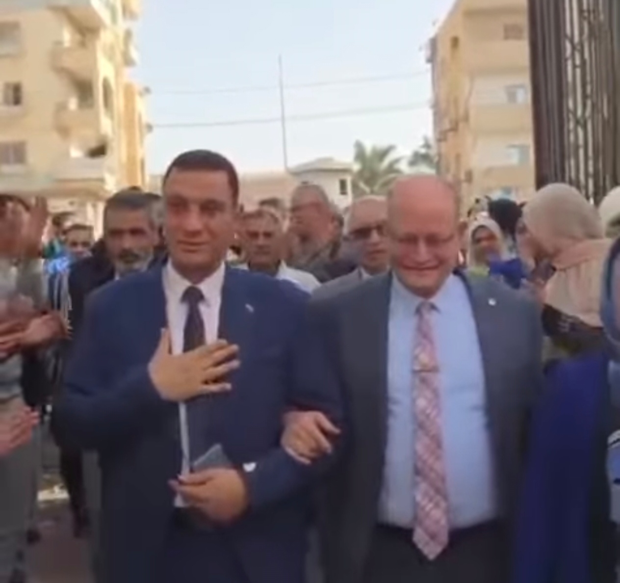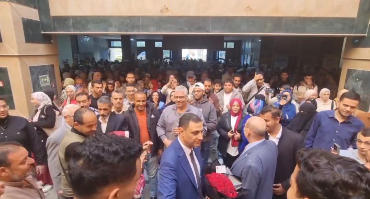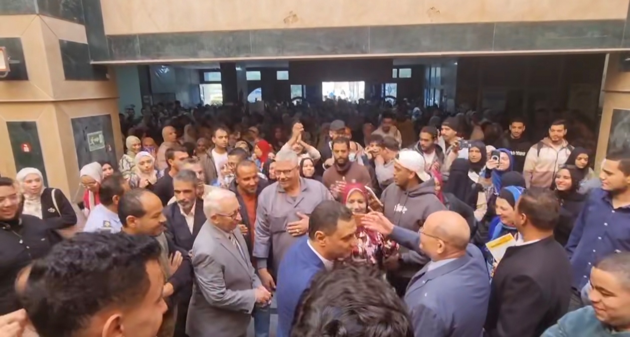 واستقبل الطلاب الدكتور ياسر كمال بالورود والزغاريد حيث نظموا ممرا شرفيا من امام بوابة المجمع النظري وحتي كلية العلوم.