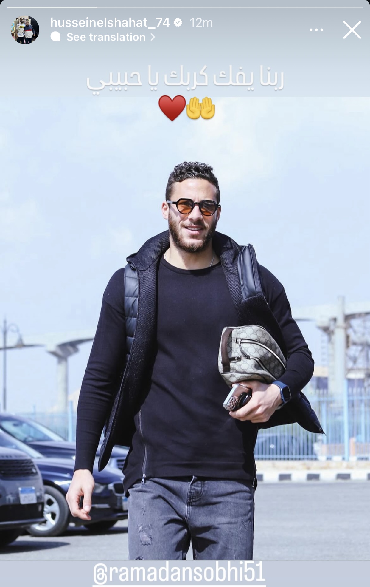 وجه حسين الشحات، لاعب الأهلي، الدعم لـ رمضان صبحي لاعب بيراميدز بعد إيقافه ٤ سنوات على ذمة قضية المنشطات