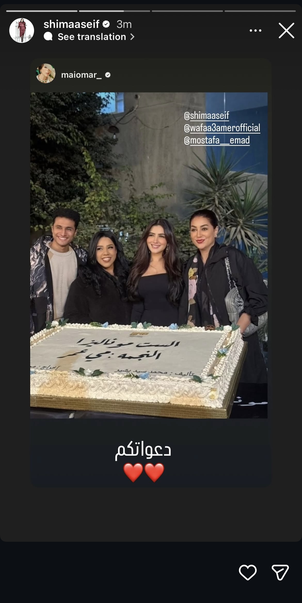 وكتبت شيماء سيف على صورة شاركتها عبر حسابها على انستجرام: “دعواتكم”.