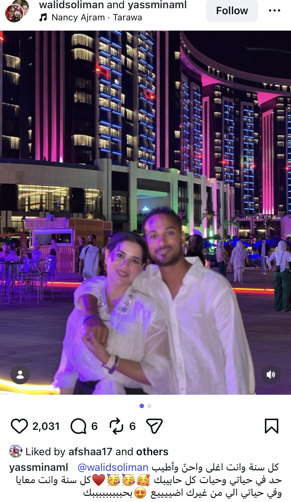وكتبت ياسمين، زوجة وليد سليمان على صور شاركتها لهم، عبر حسابها على انستجرام: “كل سنة وأنت أغلى وأحن وأطيب حد في حياتي وحياة كل حبايبك كل سنة وأنت معايا وفي حياتي ومن غيرك أضيع بحبك”.