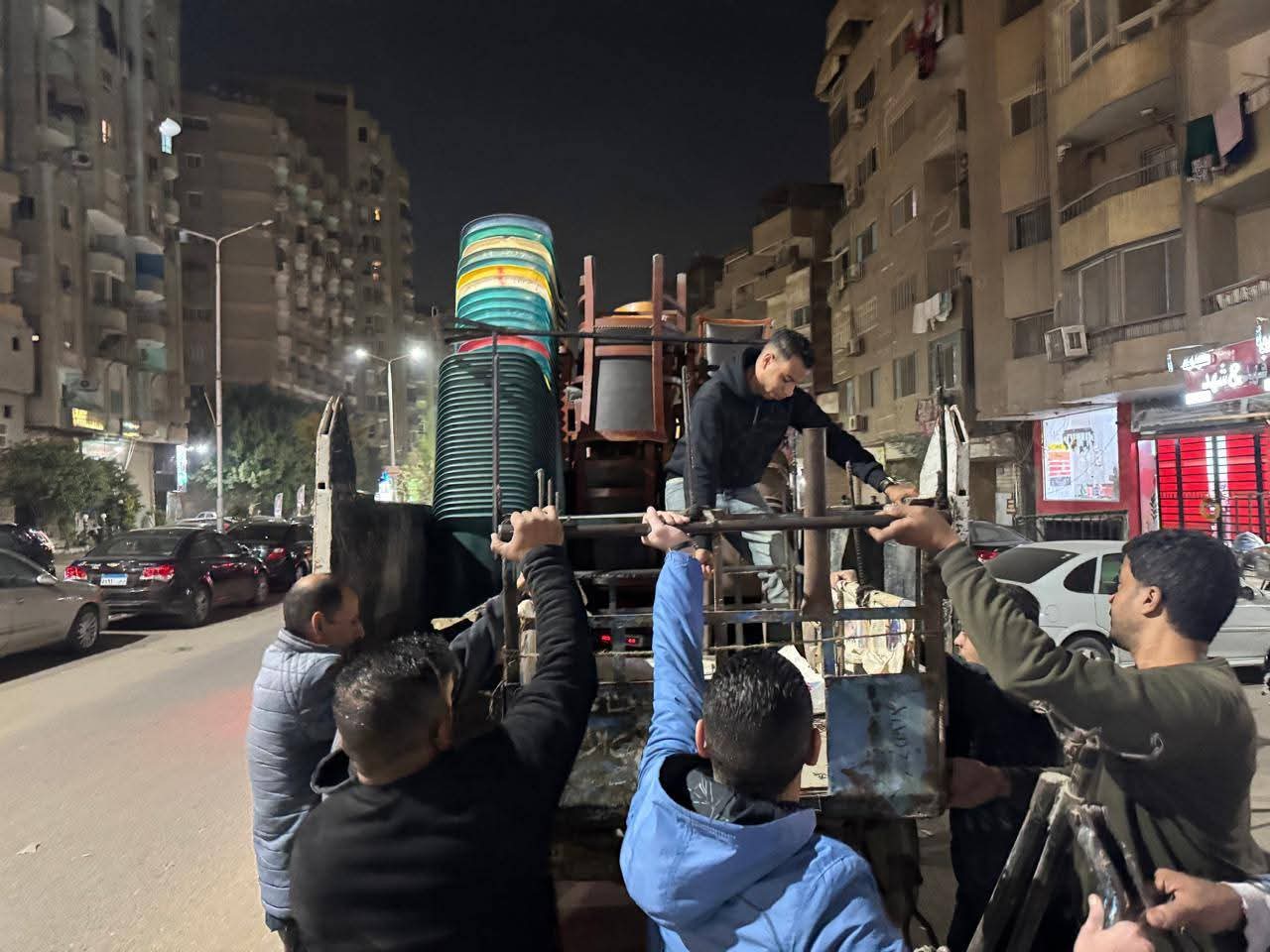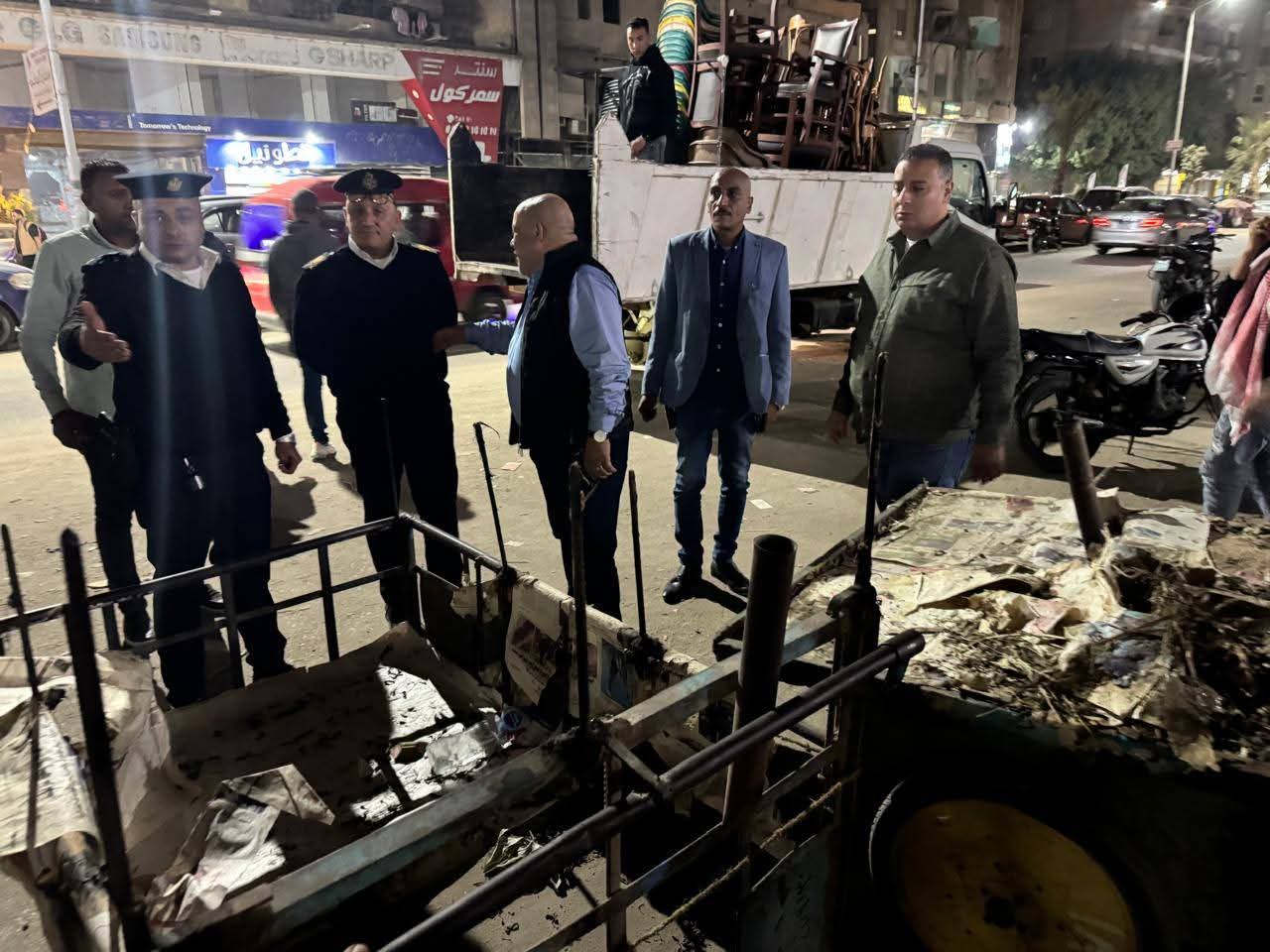 شنت محافظة الجيزة حملة ليلية مفاجئة لرفع الإشغالات والتعديات التي تعوق حركة المرور وتشوه المظهر الحضاري بشوارع الشيشيني والمريوطية فيصل بحي الهرم .