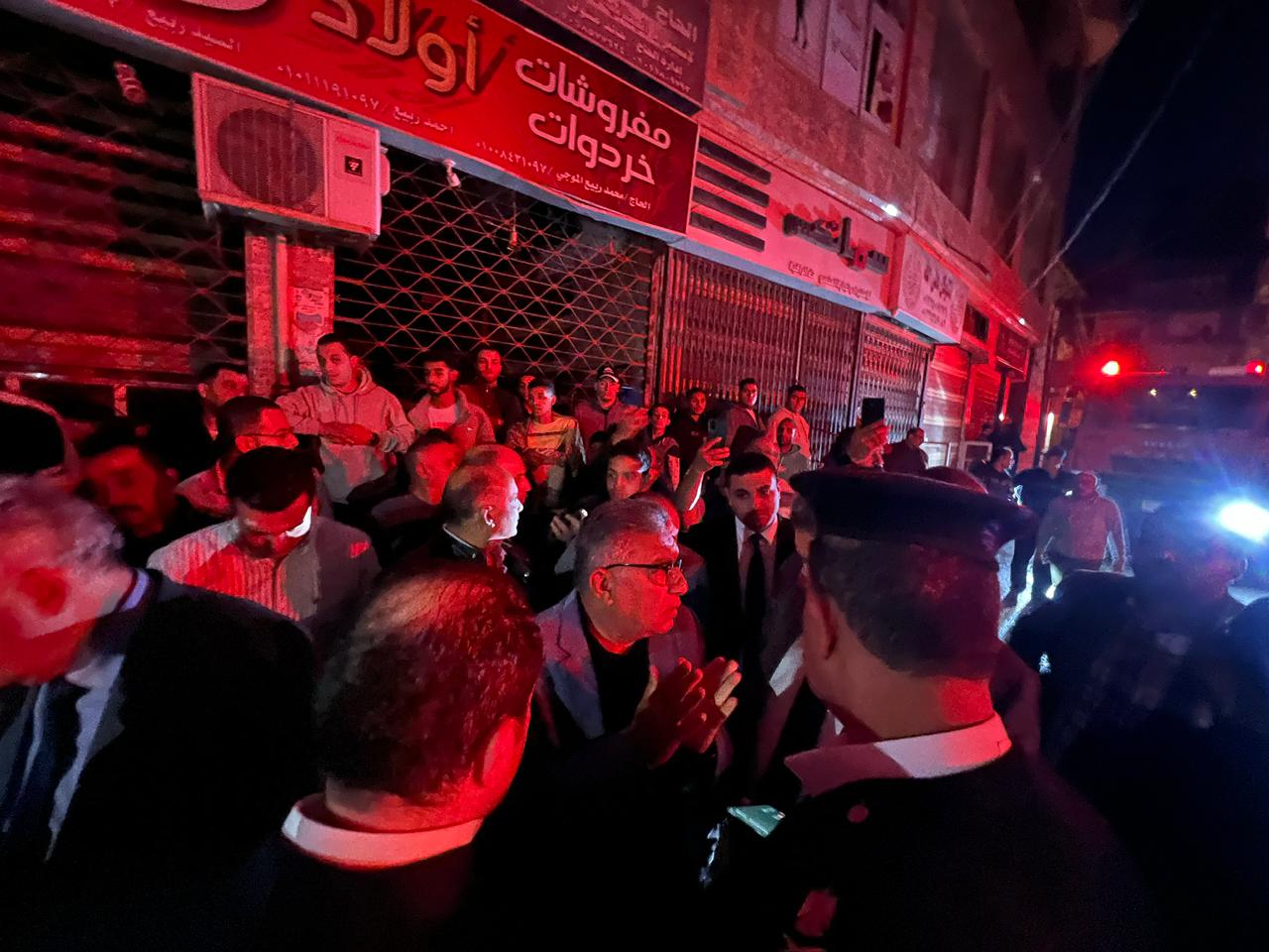 وكلف الأجهزة المعنية بفرض كردون حول المنطقة لمنع عرقلة عمل فرق الإنقاذ، ومراجعة إجراءات الحماية المدنية في المنطقة، وفحص صنابير الحريق والمتابعة الدورية لها، لمنع تكرار وقوع مثل هذه الحوادث.