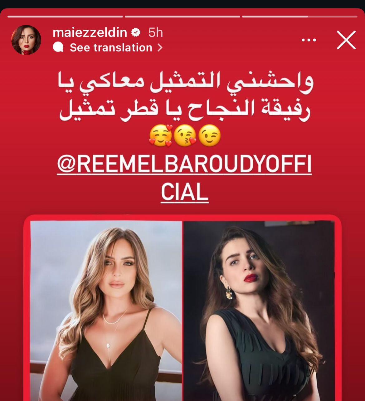 وكتبت مي عز الدين عبر ستوري حسابها على انستجرام: “واحشني التمثيل معاكي رفيقة النجاح يا قطر التمثيل”.