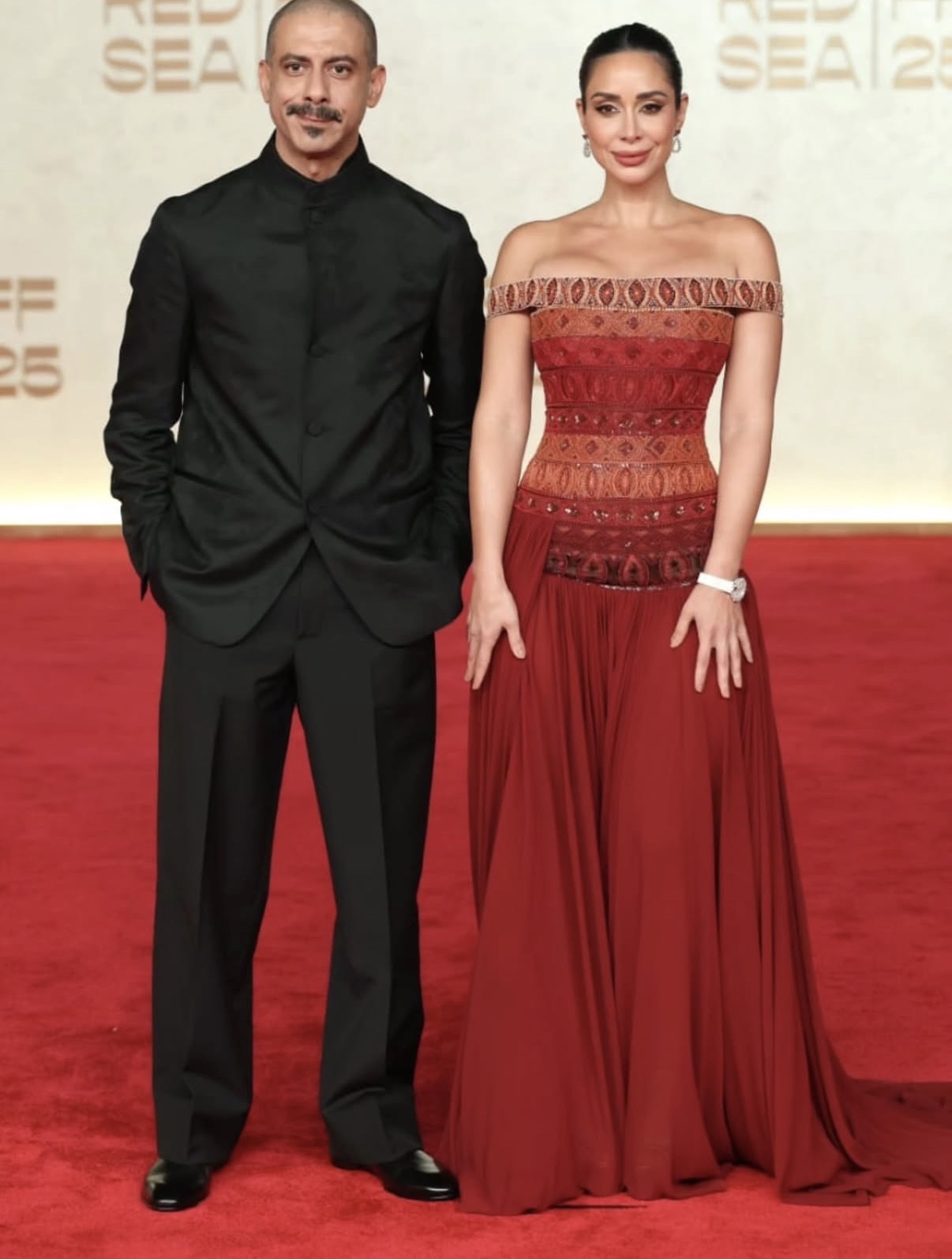 لفتت بسنت شوقي الأنظار في الصور بإطلالة جريئة، حيث ارتدت فستان طويل ذا أكمام مكشوفة واتسم التصميم بدرجات اللون الأحمر المتنسق مع لون بشرتها.
