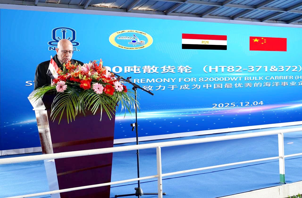 وفي كلمته خلال فعاليات الاحتفال أكد محمد سليمان متولي أن المشروع يمثل تعميقاً وتوسعاً لشراكة ناجحة وراسخة بين شركة الملاحة الوطنية وترسانة هانتونج، والتي تعززت في يناير 2024 بتسلم السفينة «وادي العريش» من الطراز نفسه، والتي أثبتت بالفعل مستوى عالى من الجودة والاحترافية والاعتمادية أثناء الخدمة.مضيفا ان السفينتان الجديدتان – اللتين تم التعاقد عليهما في أبريل 2024 ومن المقرر تسلّمهما عام 2026 – تعدان نموذجاً متقدماً لتكنولوجيا بناء السفن. وحيث تبلغ الحمولة الساكنة لكل سفينة 82,000 طن، بطول 229 متراً، وعرض 32.26 متراً، وغاطس 14.5 متراً، وتعتمد على محرك رئيسي من طراز MAN B&W بقوة 7,490 كيلووات مزوّد بأنظمة متطورة للتحكم في الانبعاثات، مما يكفل الامتثال التام للمعايير البيئية العالمية الحالية والمستقبلية مع تحقيق أعلى مستويات الكفاءة التشغيلية.