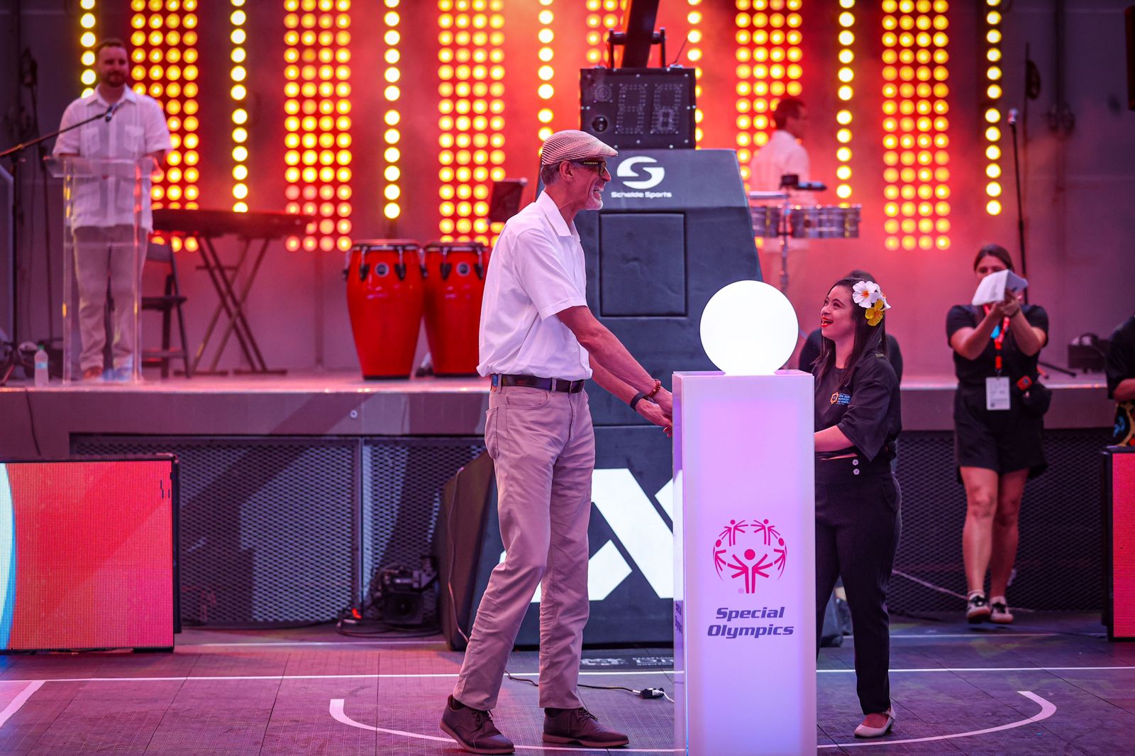 وأشعلت شعلة الأمل في *ديستريتو تي–موبايل* على يد أسطورة كرة السلة البورتوريكية وعضو قاعة مشاهير FIBA، خوسيه بيكولين أورتيز، واللاعبة ناتاليا روبيو من الأولمبياد الخاص بورتوريكو، إلى جانب أرنالدو بيريس موراليس، رئيس الأولمبياد الخاص بورتوريكو، معلنين رسميًا انطلاق البطولة.