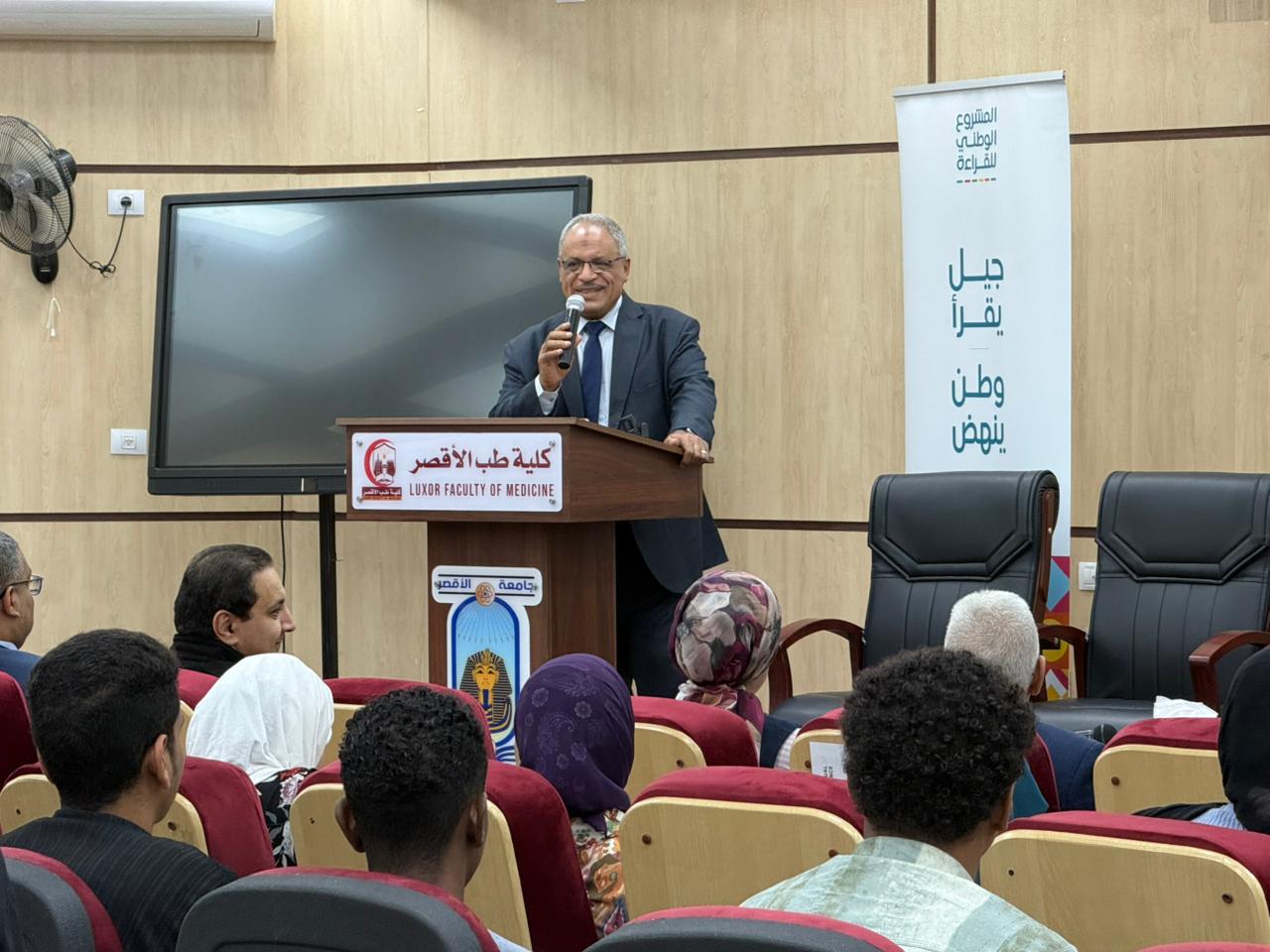 نظّمت جامعة الأقصر اليوم ندوة تثقيفية للمشروع الوطني للقراءة (الموسم الخامس) بقاعة كلية الطب، بمشاركة مسؤولي المشروع وعدد من قيادات الجامعة وأعضاء هيئة التدريس والطلاب.