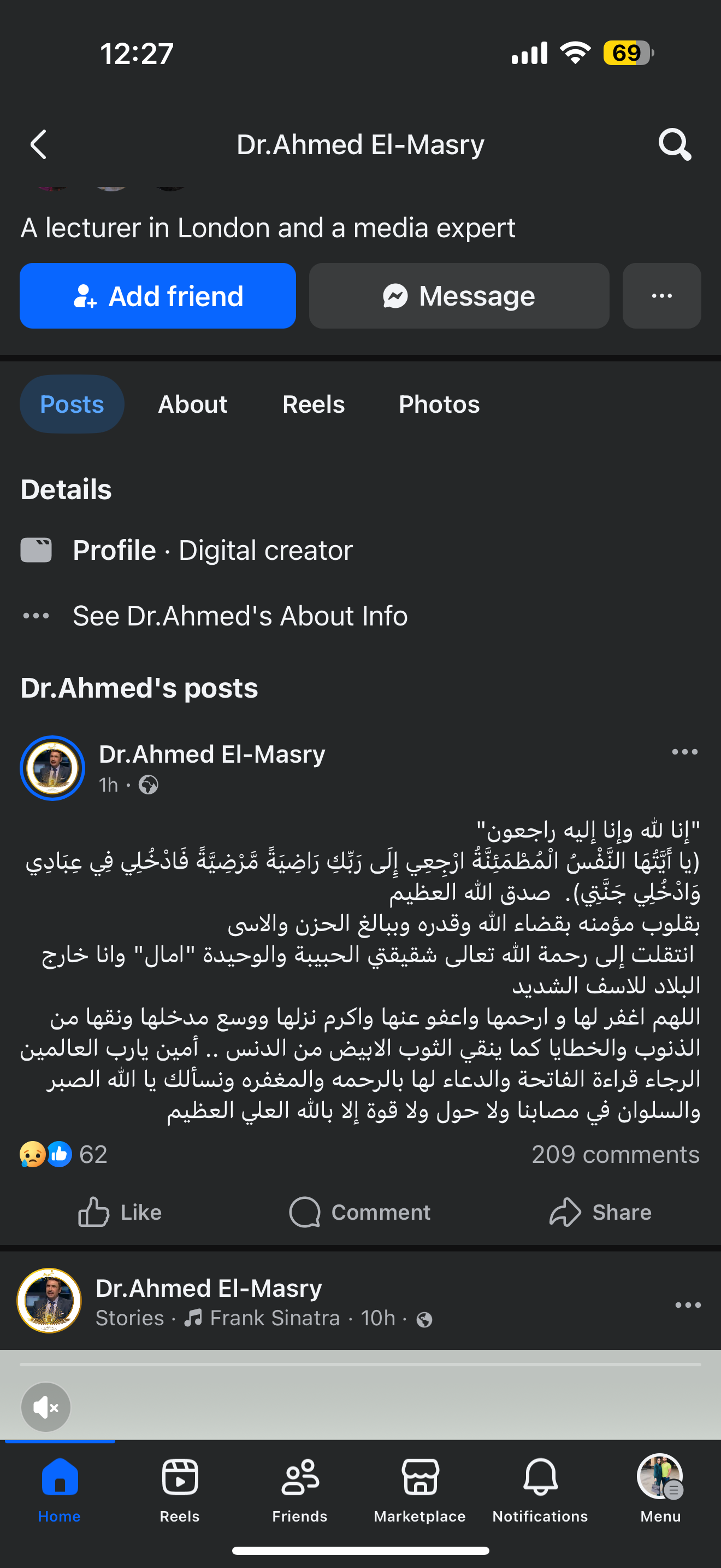 أعلن والد الفنان أمير المصرى وفاة شقيقته آمال، عبر حسابه الشخصي بموقع التواصل الإجتماعي فيسبوك
