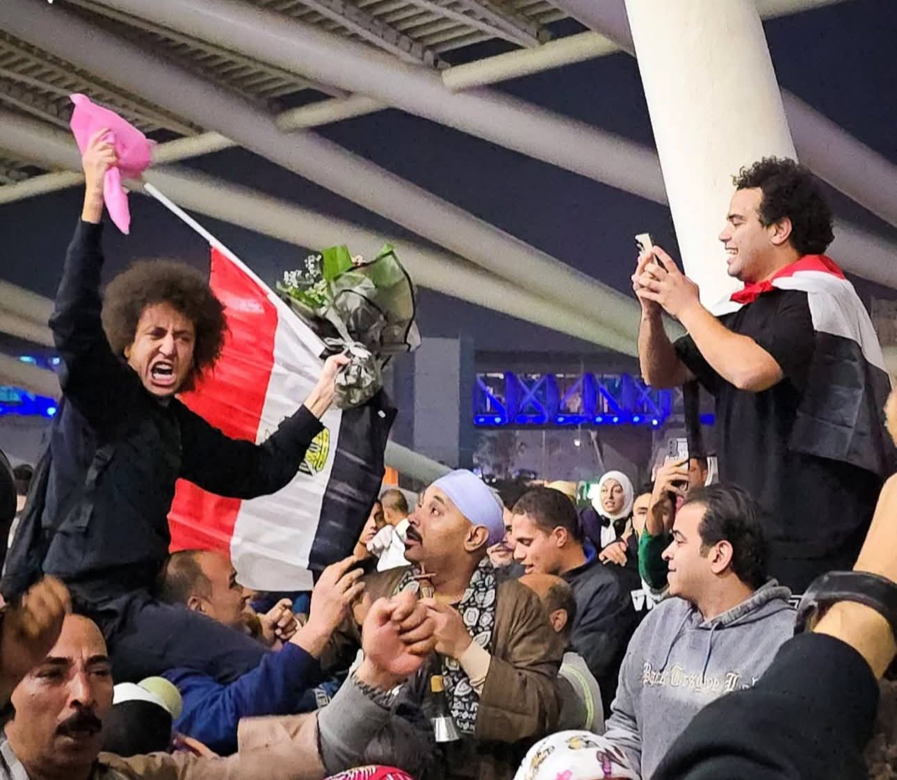 وصل منذ قليل احمد عبد القادر ميدو رئيس اتحاد شباب مصر بالخارج لمطار القاهرة وكان في استقباله عدد كبير من المصريين احتفالا بالبراءة من تهم حيازة السلاح