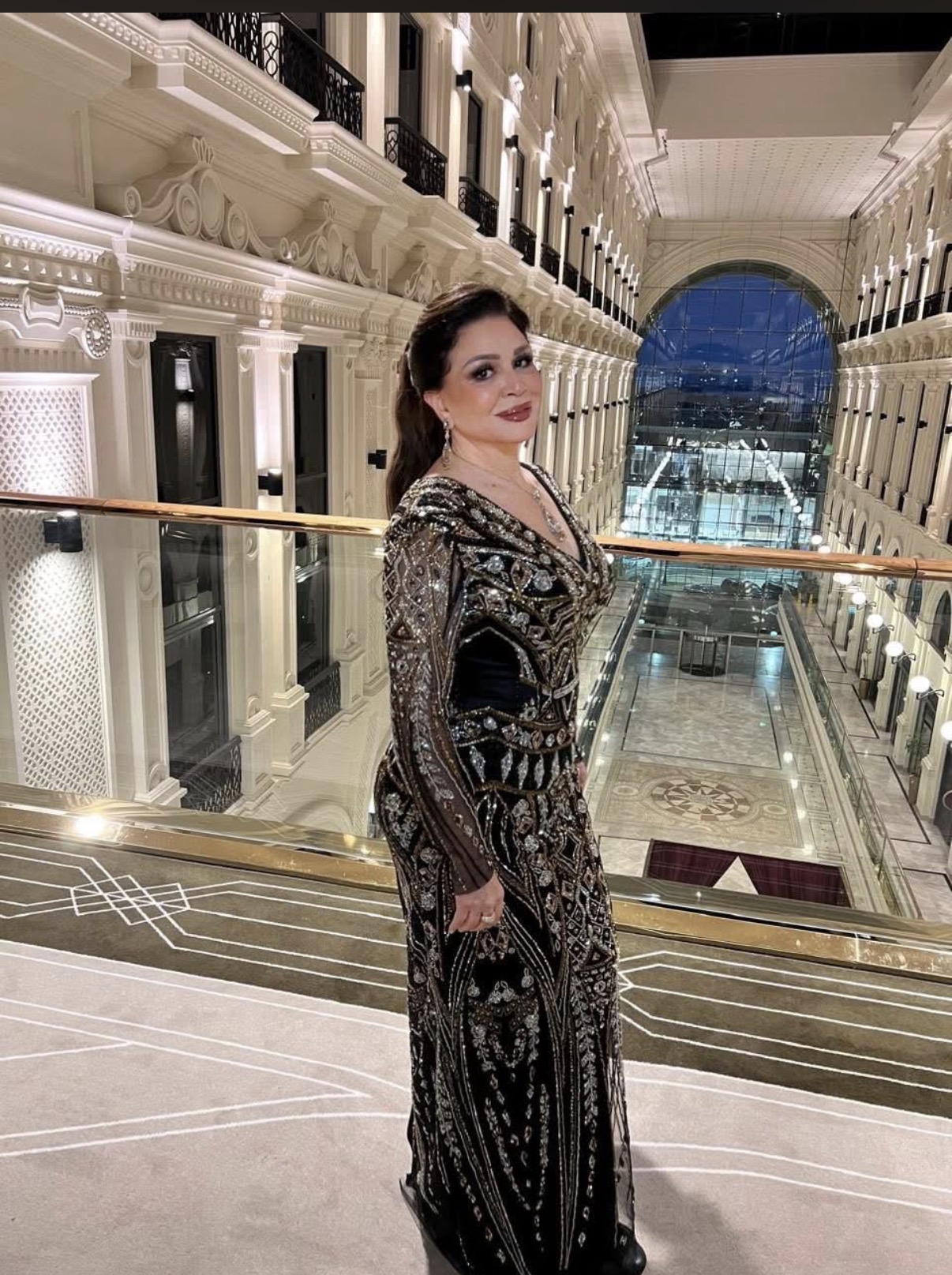 انتعلت إلهام شاهين حذاء ذا كعب عالي مع حقيبة يد صغيرة الحجم باللون الأسود، تزينت بمجموعة من المجوهرات الراقية التي منحتها إطلالة متكاملة.