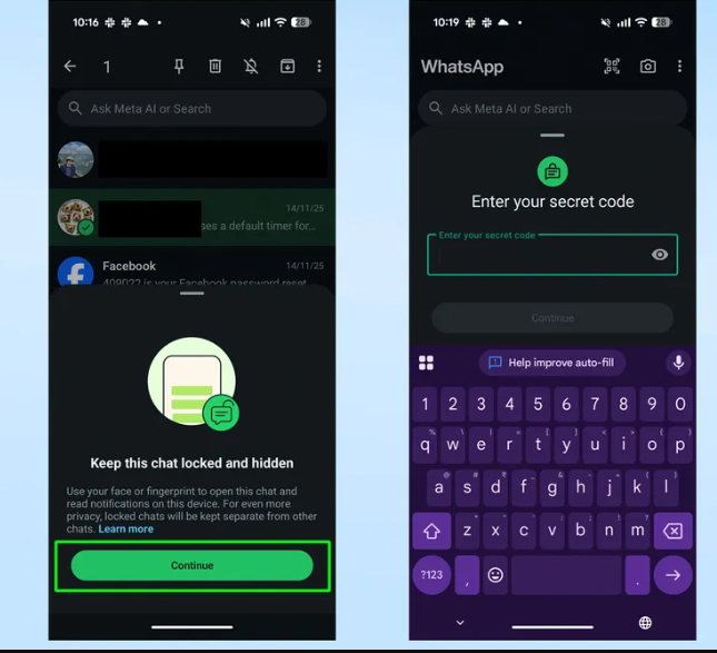 إذا كنت تريد إخفاء محادثة معينة دون قفل التطبيق بأكمله، يمكنك استخدام ميزة قفل المحادثات في “واتساب”، من خلال هذه الميزة، يمكنك وضع كلمة سر أو استخدام المصادقة البيومترية للوصول إلى المحادثات المغلقة فقط، مع الحفاظ على بقية المحادثات مفتوحة.