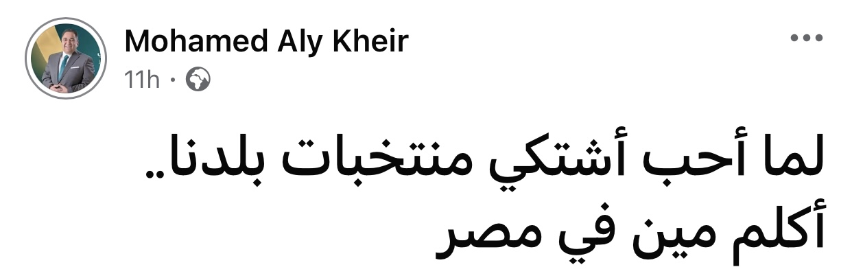 وكتب خير: "لما أحب اشتكي منتخب بلدنا..أكلم مين في مصر".